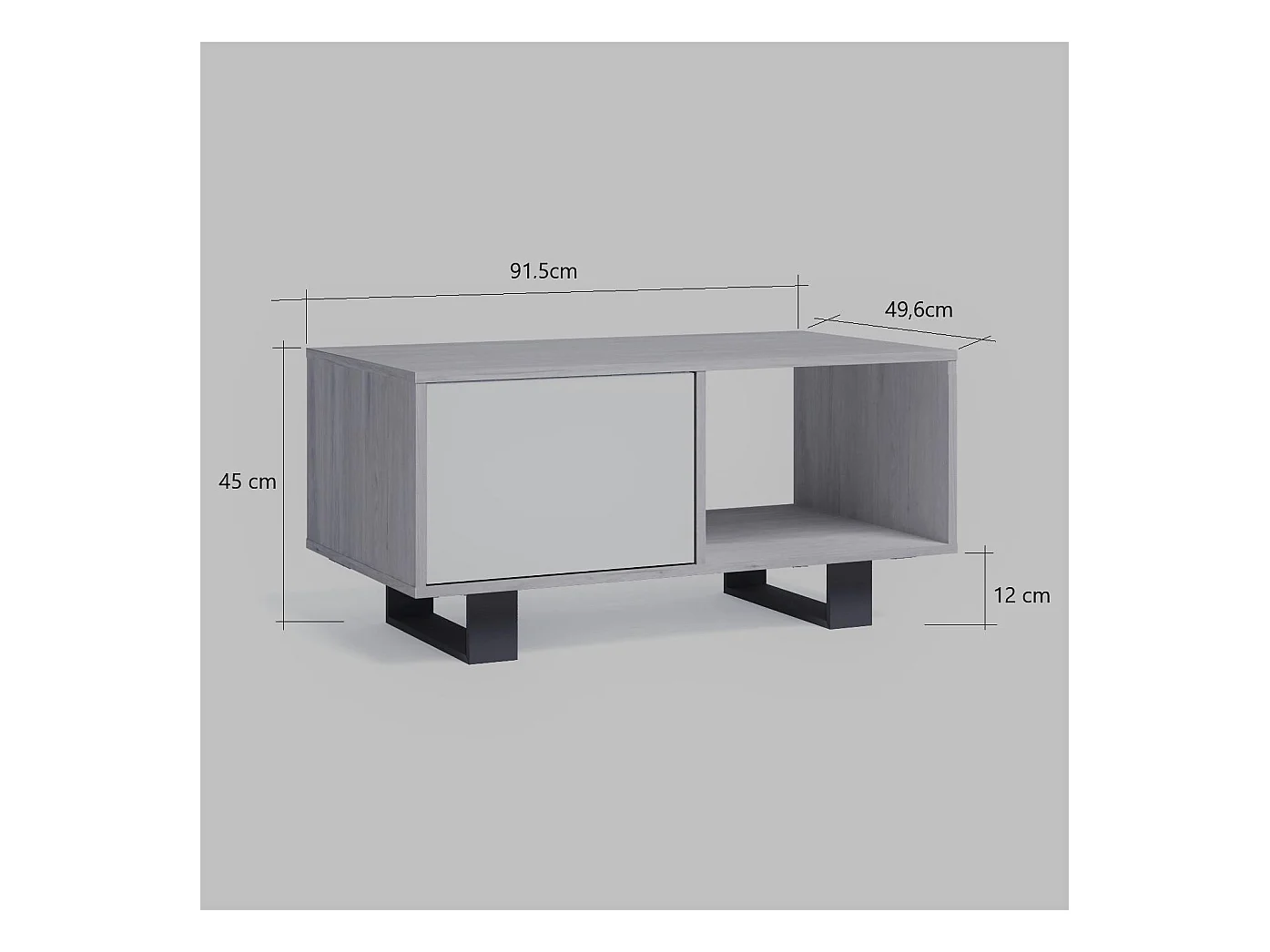 Couchtisch mit Türen, Esszimmer, Modell WIND, Gestell Farbe Weiß, Türen Farbe Eiche, 92x50x45cm
