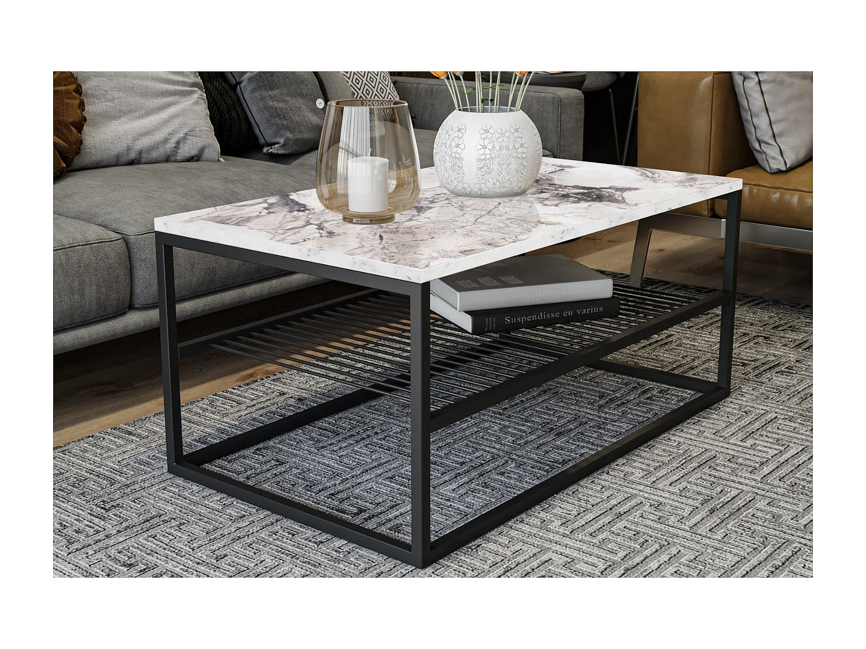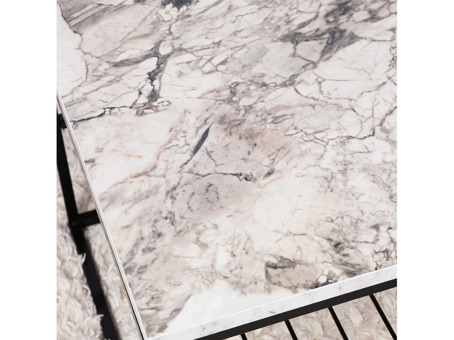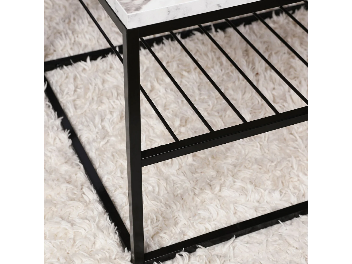 Couchtisch mit weißer Marmoroptik und Regal - MARBEL