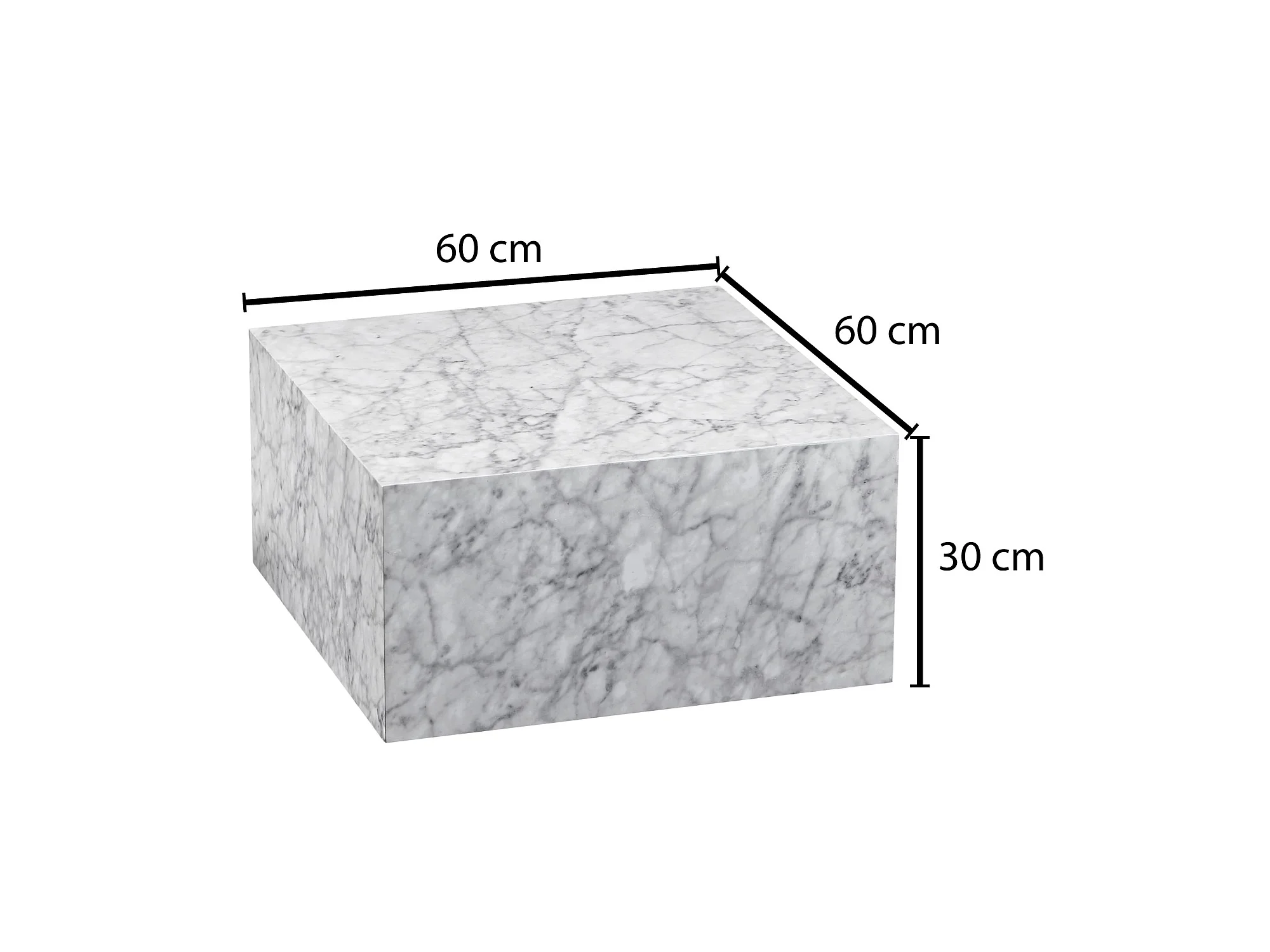 Couchtisch MONOBLOC Weiß Marmor Optik 60 cm Wohnzimmertisch Sofatisch