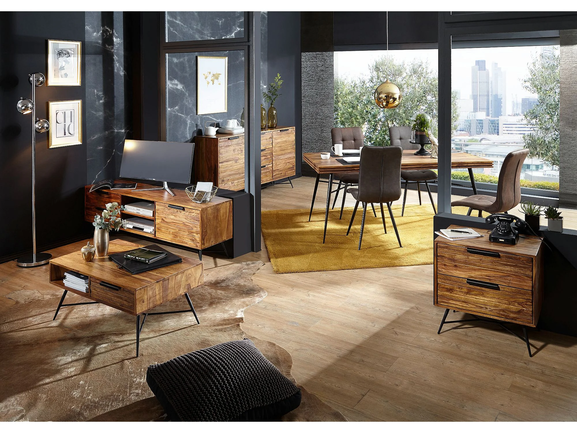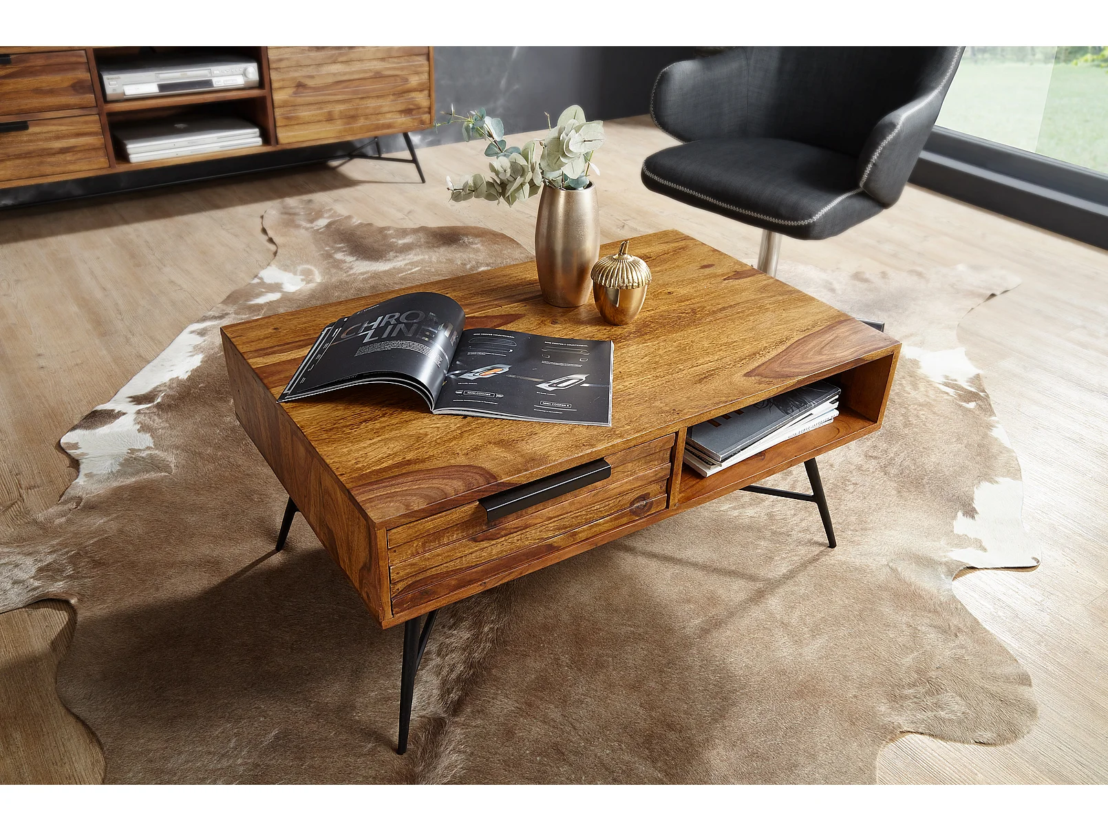 Couchtisch NISHAN Massiv Holz Holztisch Wohnzimmertisch Metallbeine
