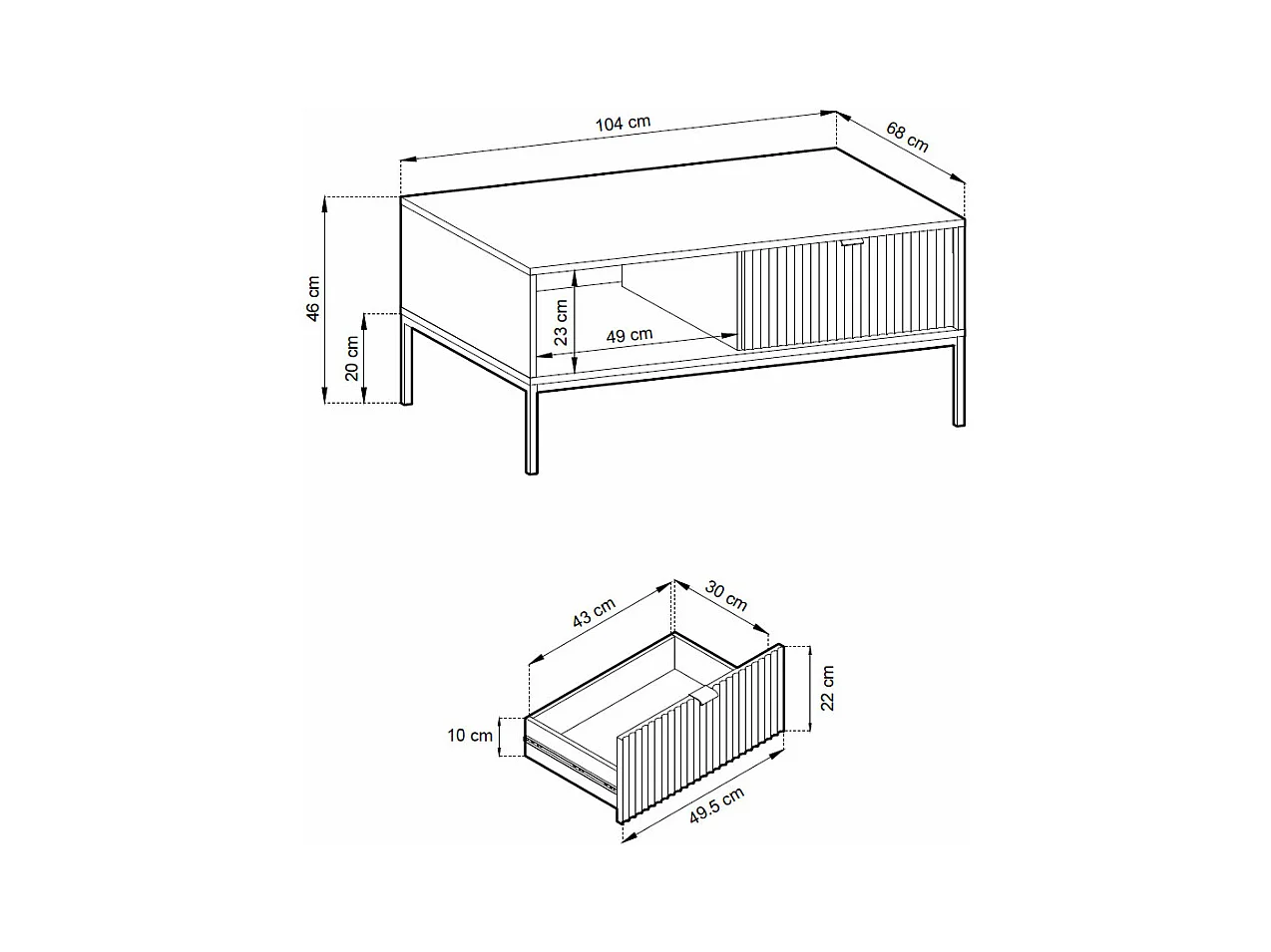 COUCHTISCH Nova Kaschmir / Schwarz 104 / 68 / 46cm