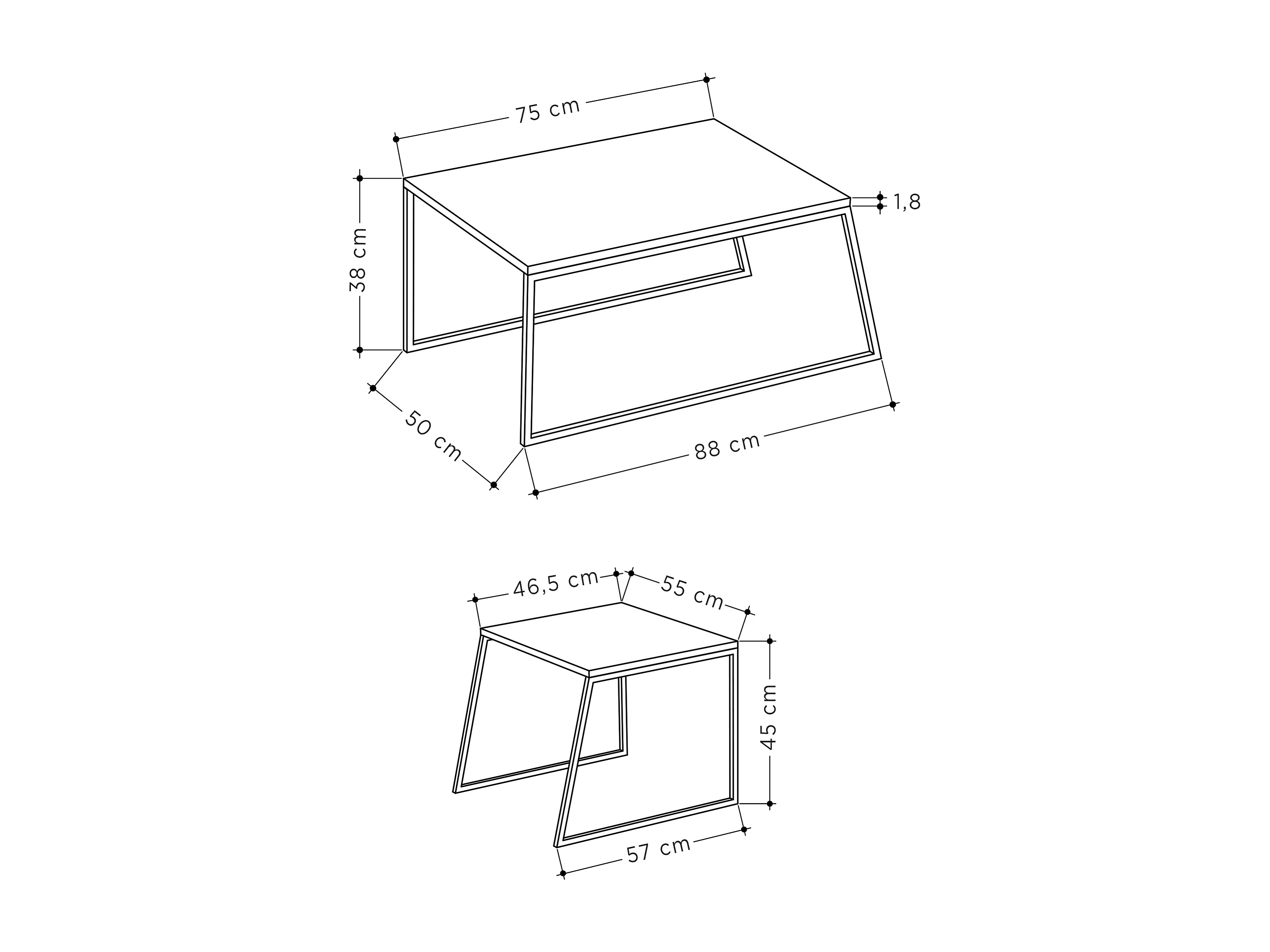 Couchtisch PAL - Anthrazit Grau - 88 x 50 x 38 cm