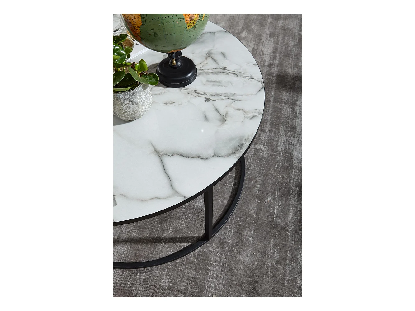 Couchtisch Rund Ø 80 cm Wohnzimmertisch Weiß Marmor Optik Sofatisch