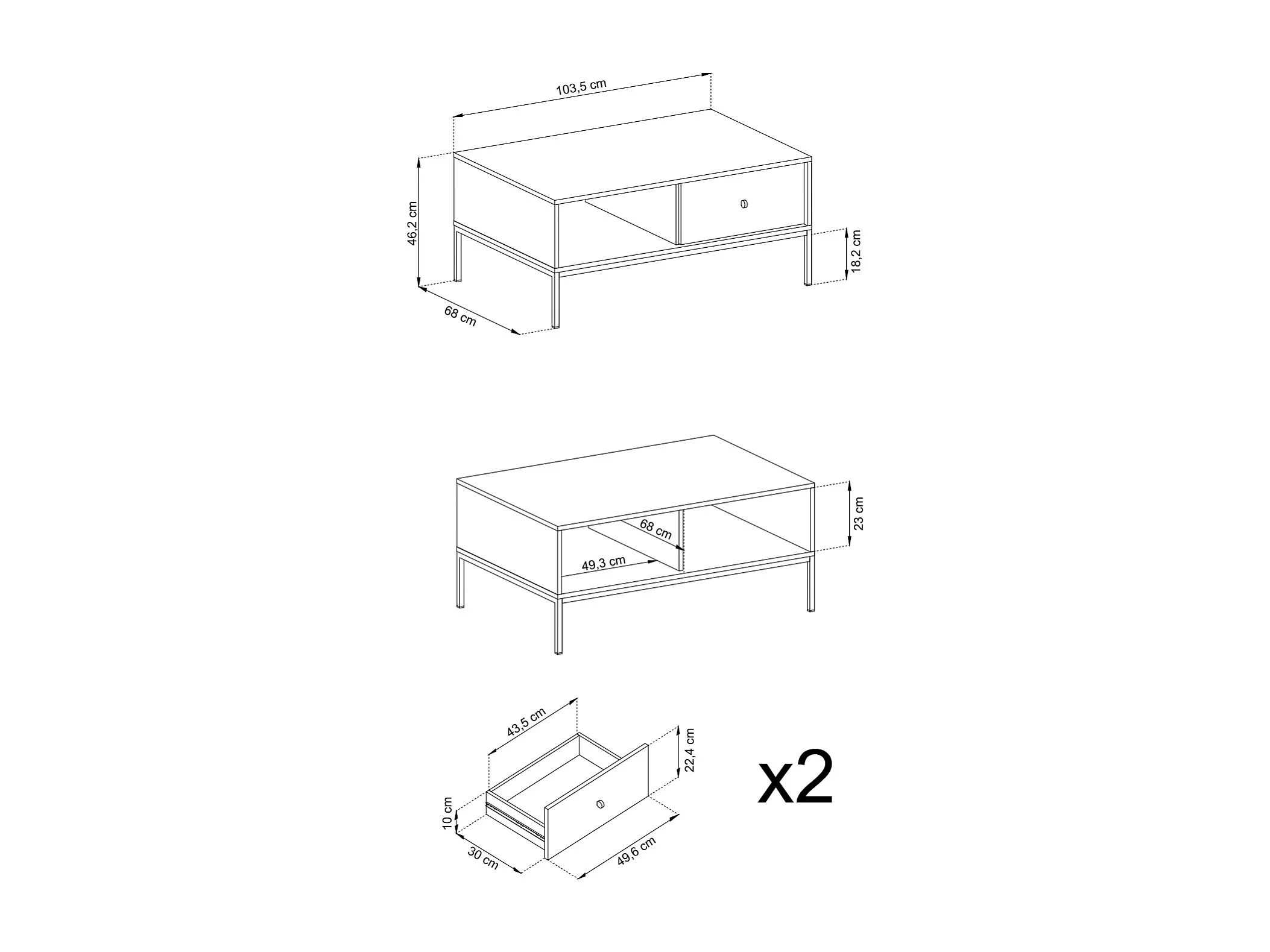 Couchtisch, sandbeige, 103,5 x 46,2 x 68 cm