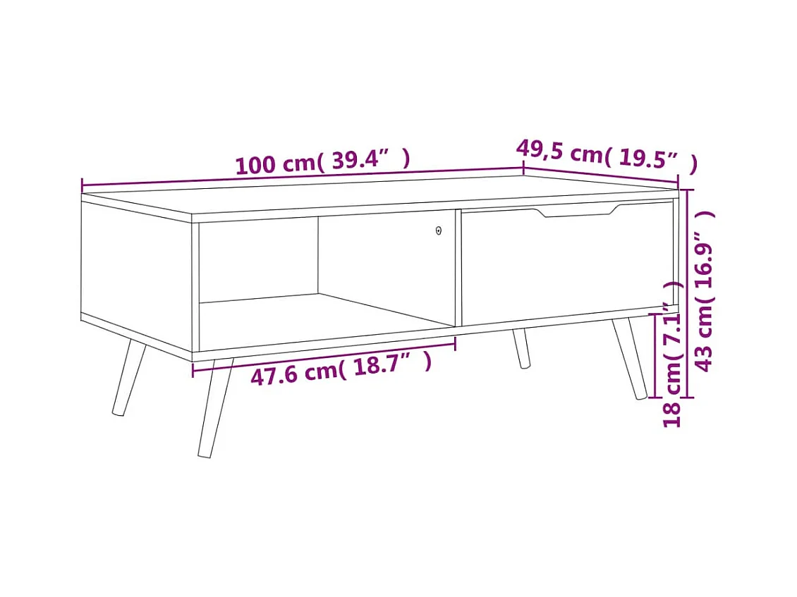 Couchtisch Schwarz 100x49,5x43 cm Holzwerkstoff
