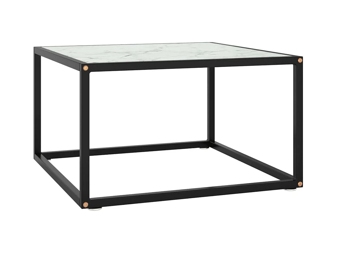 Couchtisch Schwarz mit Weißem Glas in Marmor-Optik 60x60x35 cm