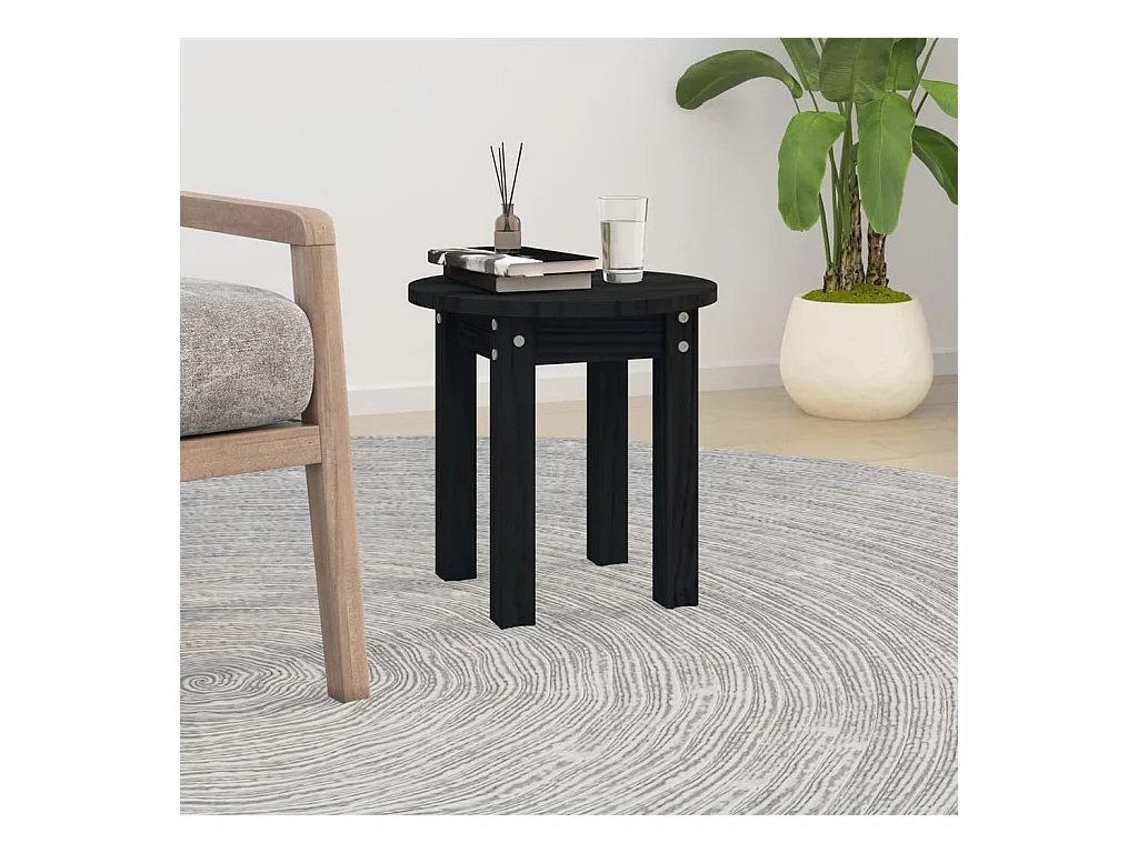 Couchtisch Schwarz Ø 35x35 cm Massivholz Kiefer