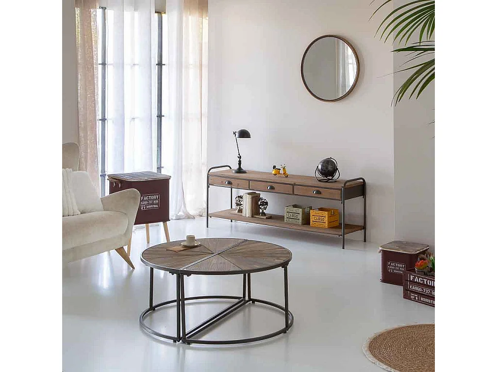 Couchtisch Set 2 Teile aus Holz und Metall braun 91x45,5x40,5