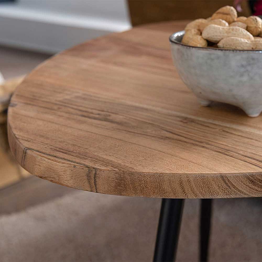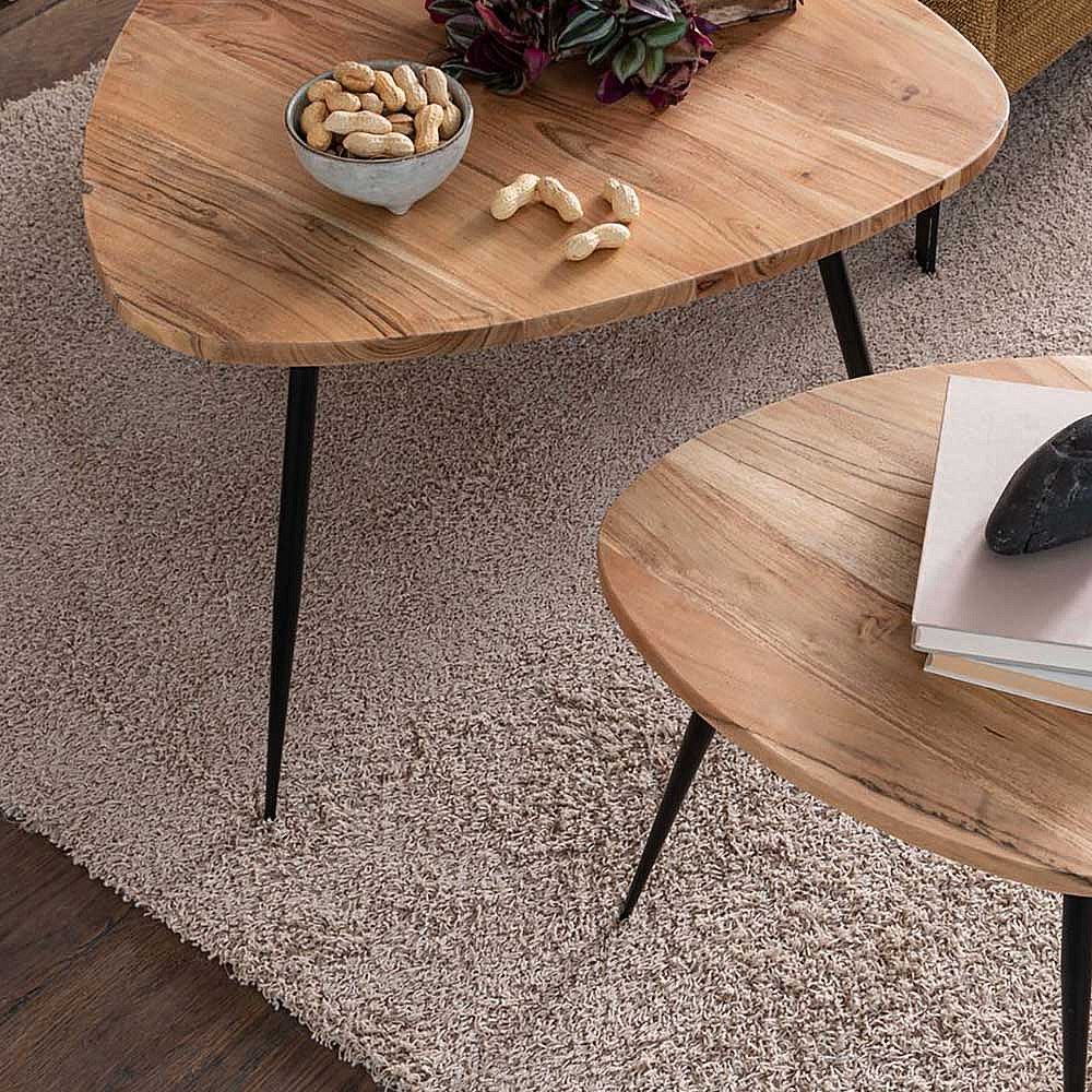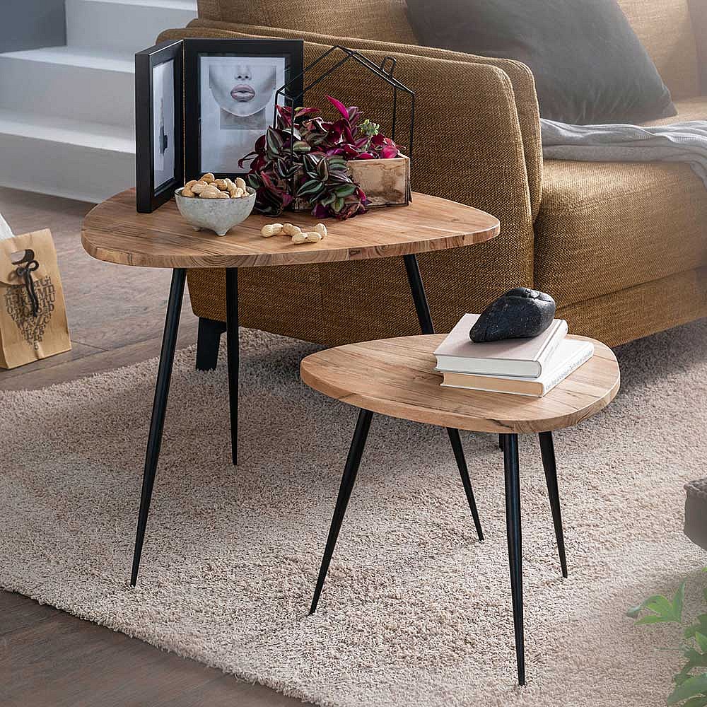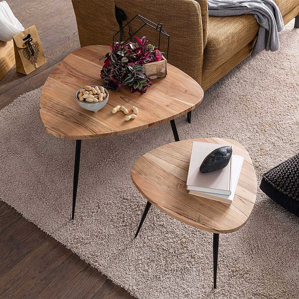 Couchtisch Set aus Akazie Massivholz und Edelstahl Wankelform (zweiteilig)