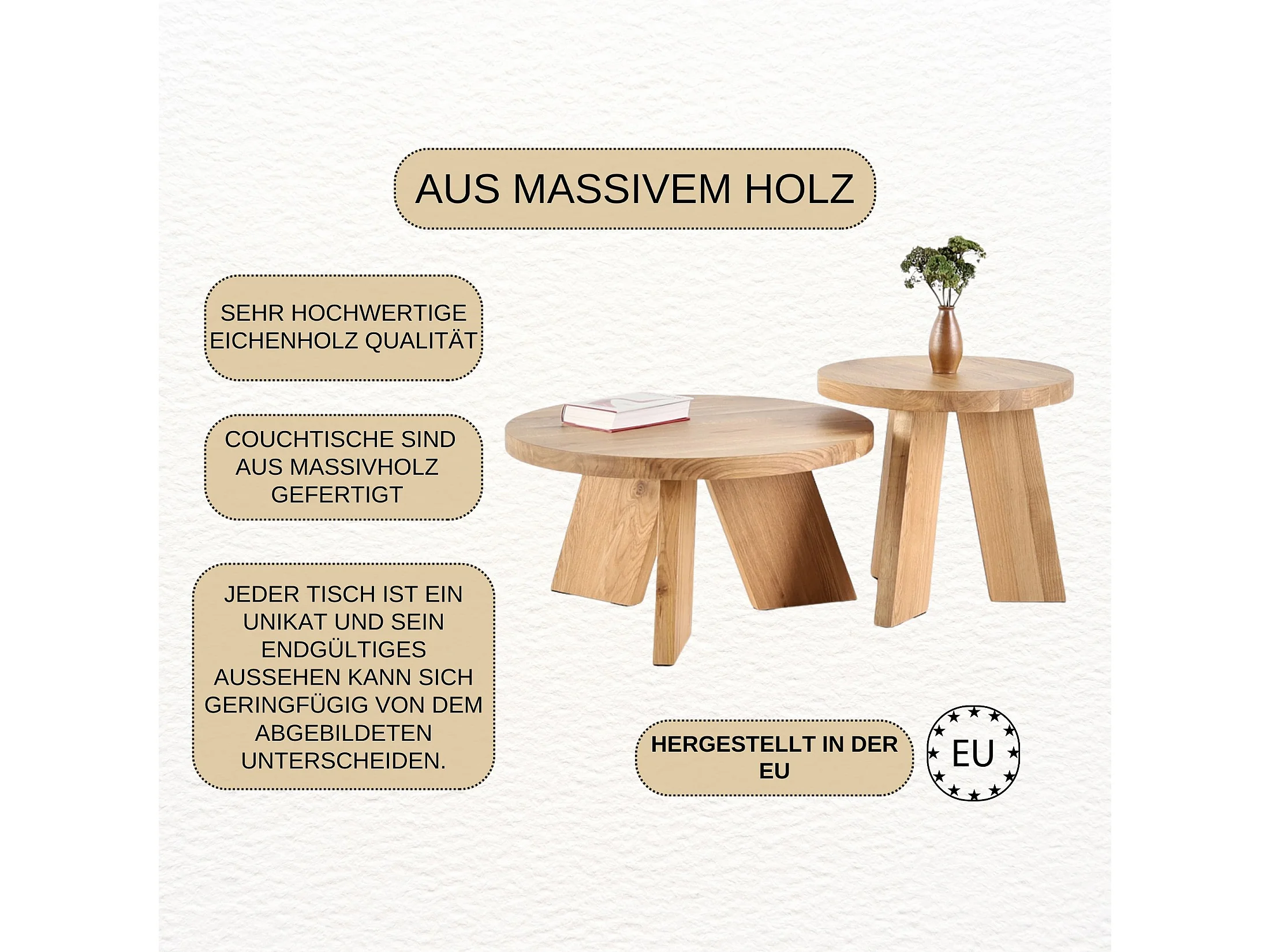 Couchtisch - SET aus massivem Eichenholz zwei Tische stabil & modern