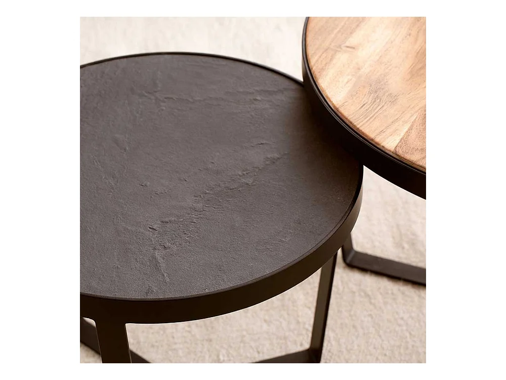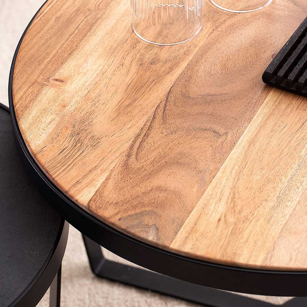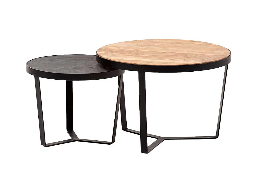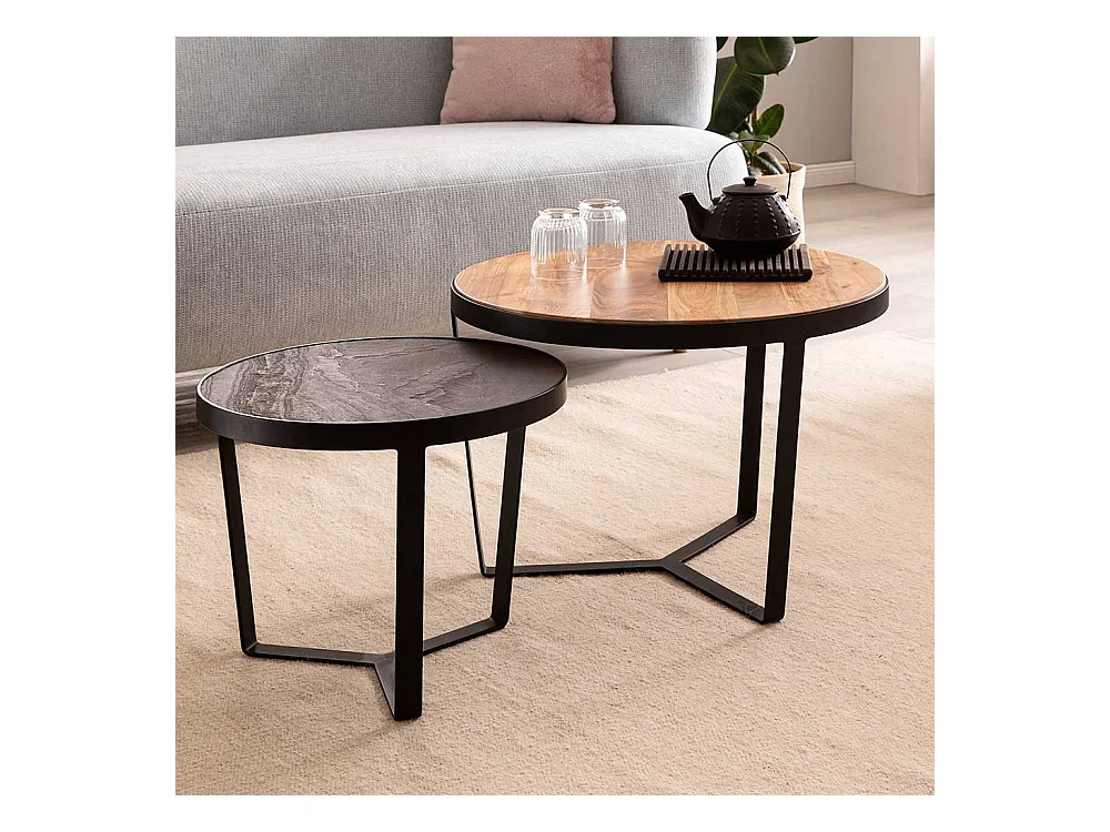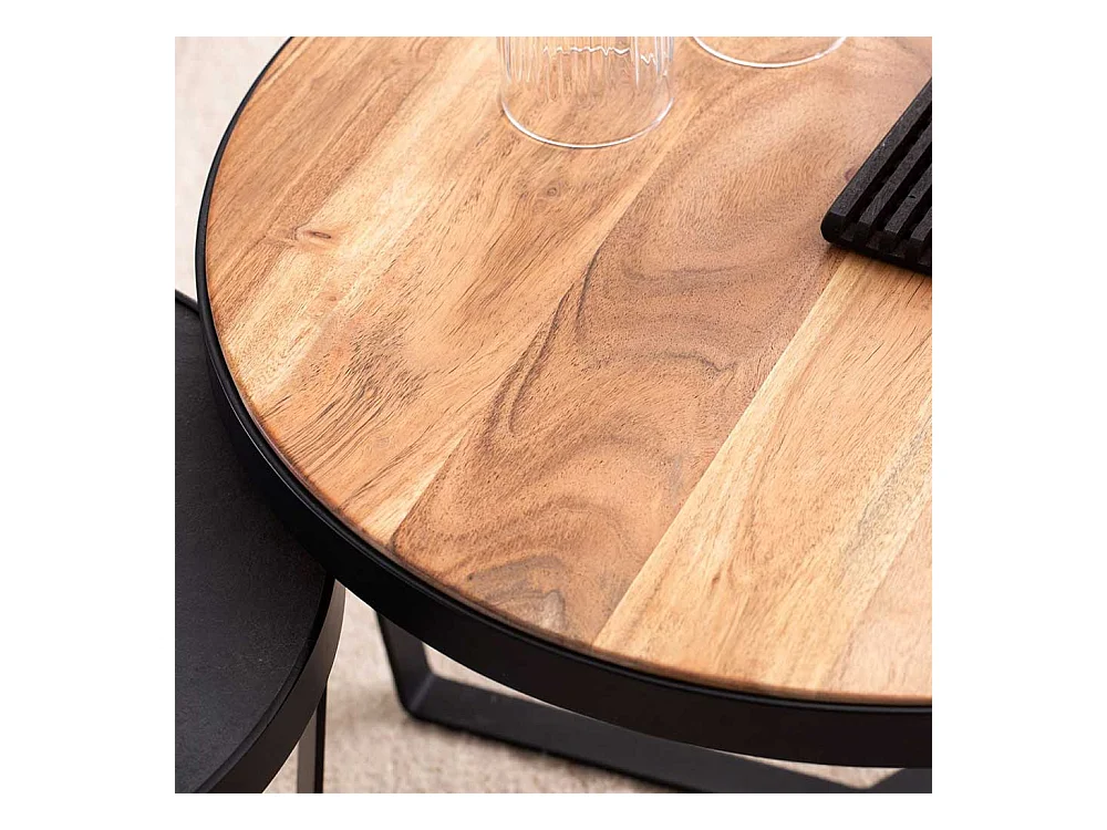 Couchtisch Set Sofatische in Anthrazit und Akaziefarben (zweiteilig)
