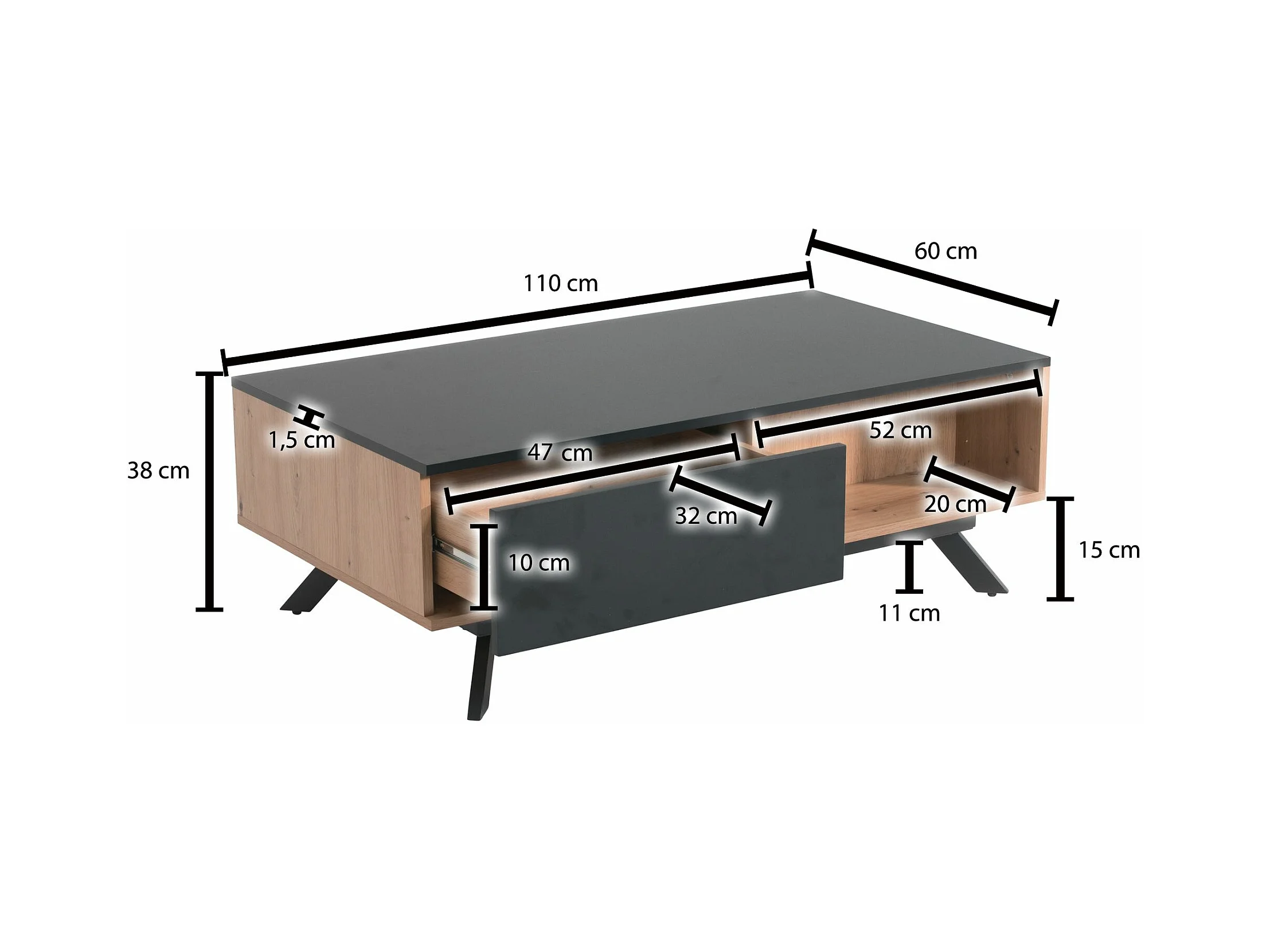 Couchtisch Sofatisch 110x60x38 cm MDF Eiche Wohnzimmertisch Rechteckig