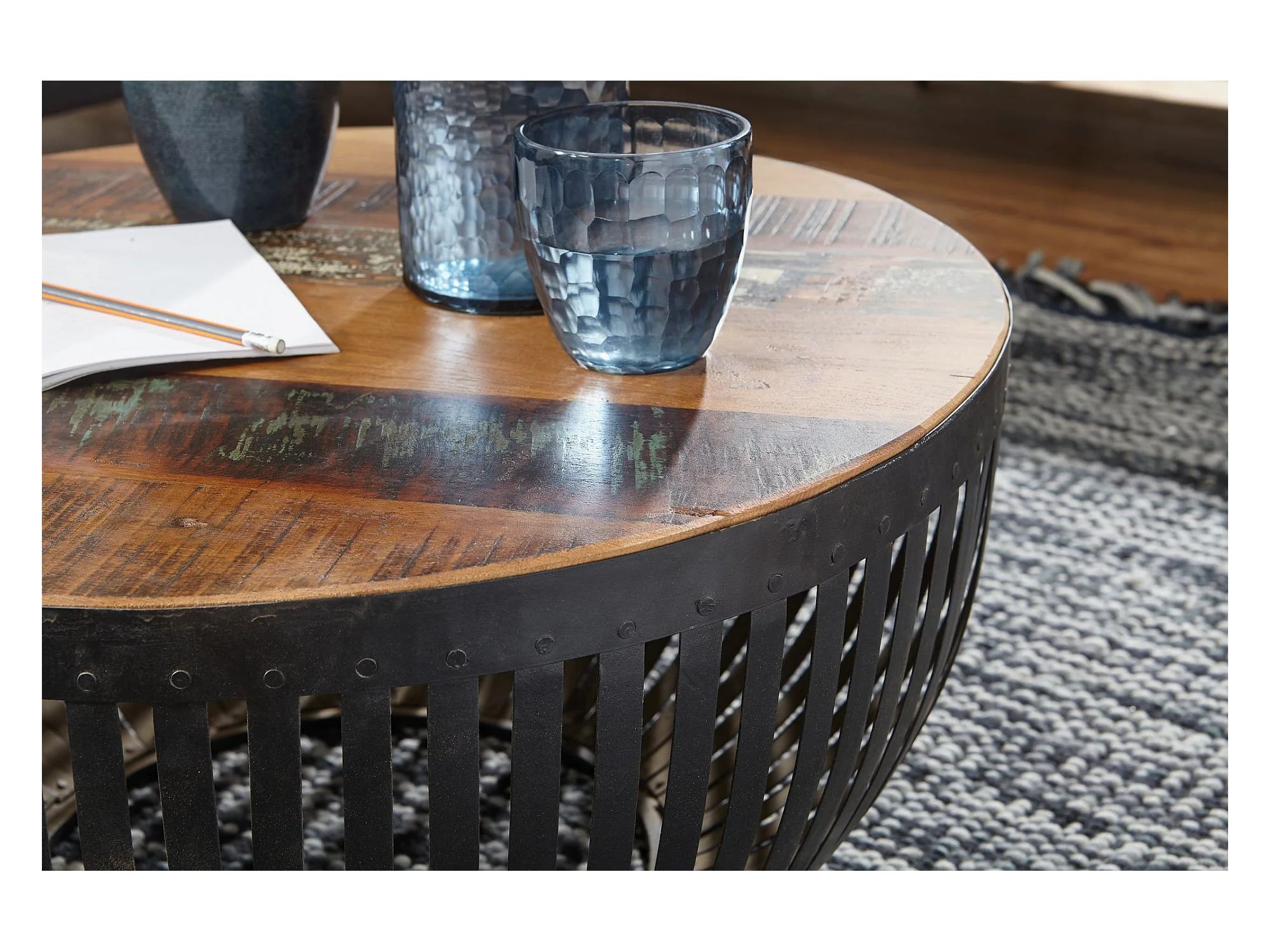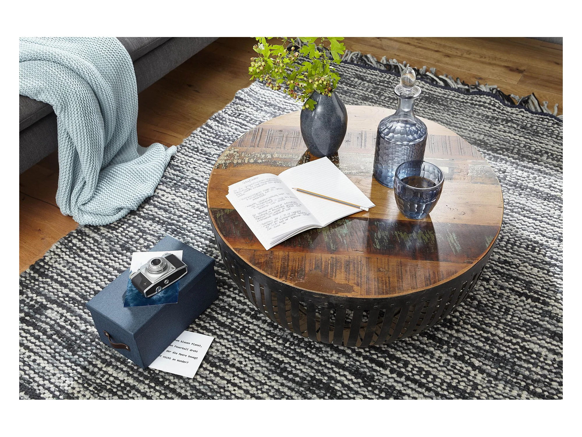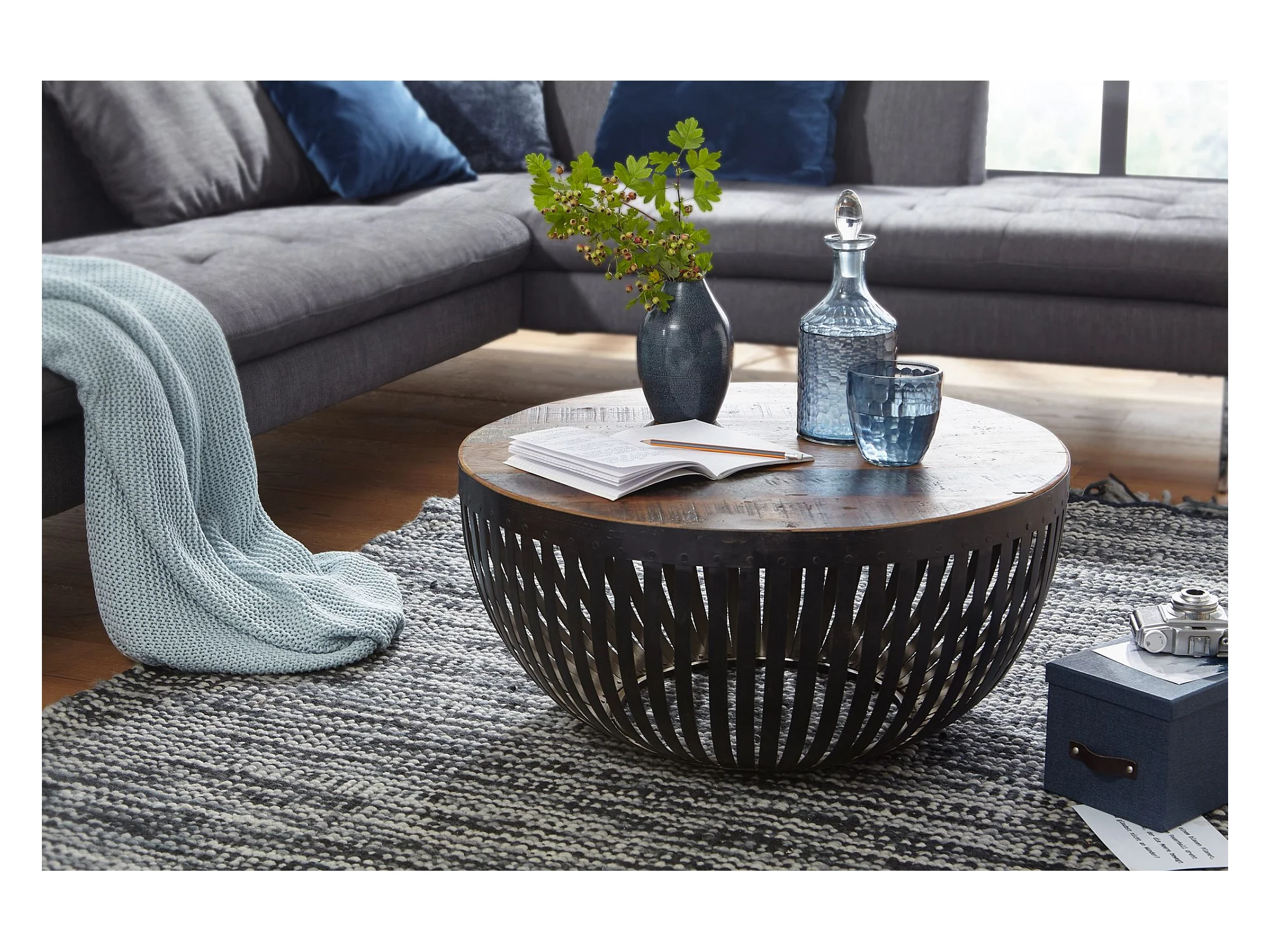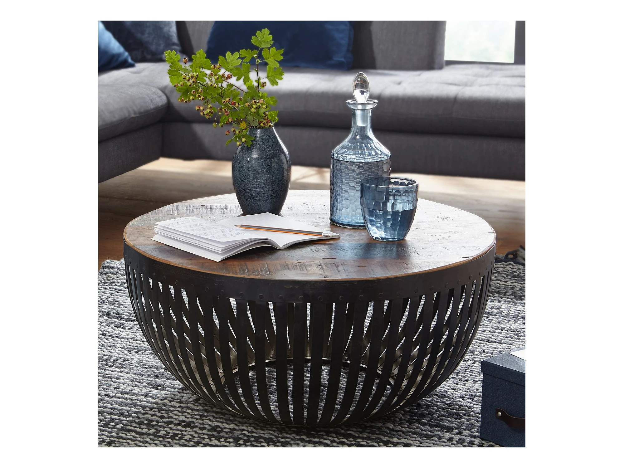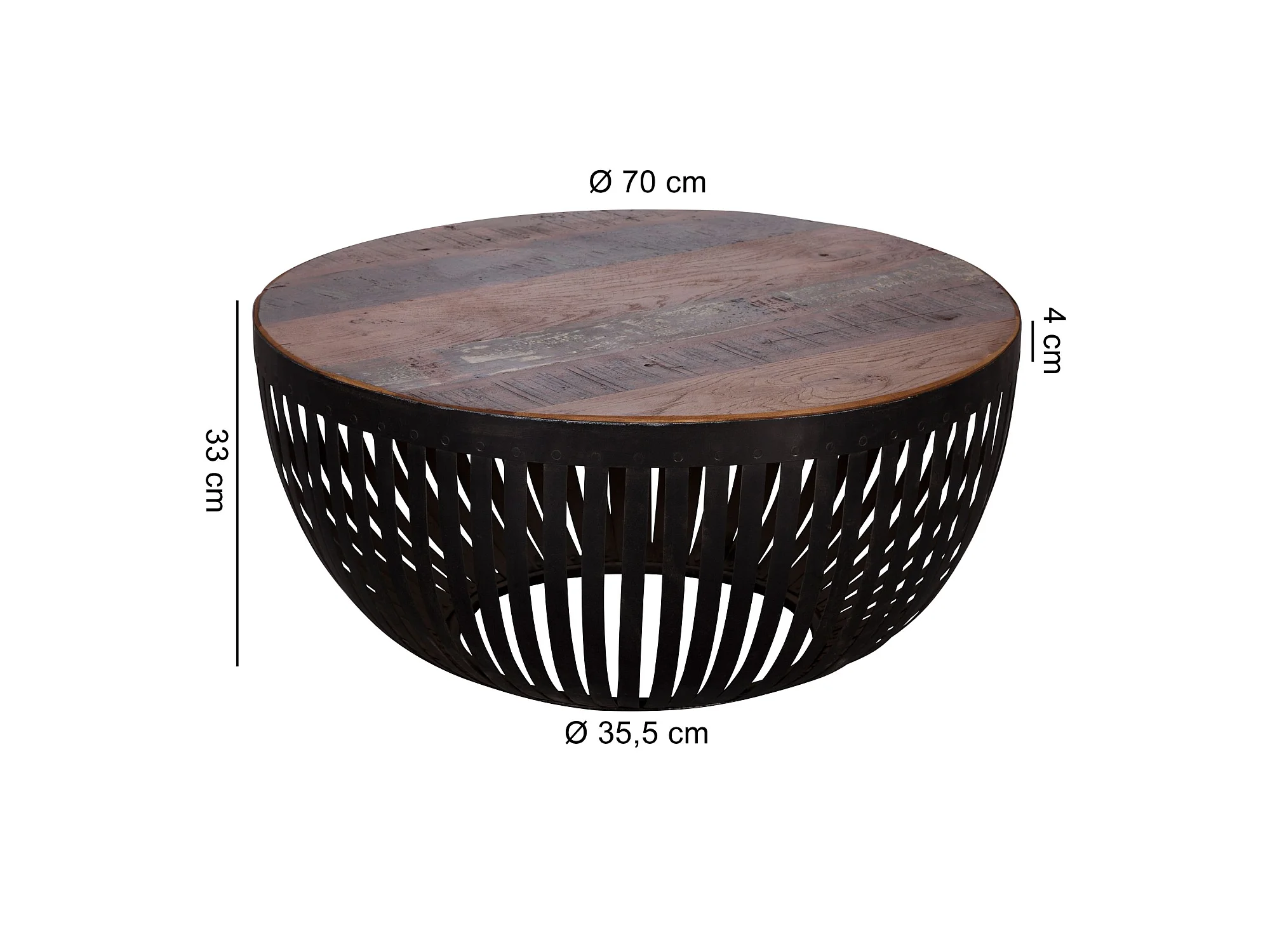 Couchtisch Sofatisch 70 cm Tisch Holz Massiv Metall Wohnzimmertisch