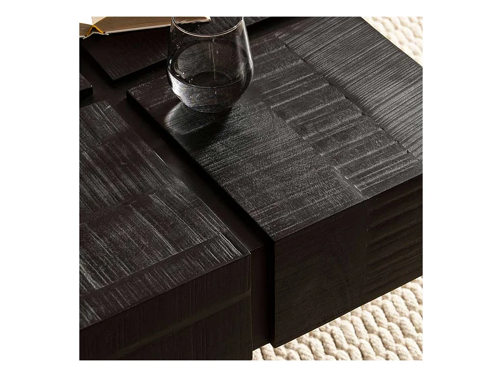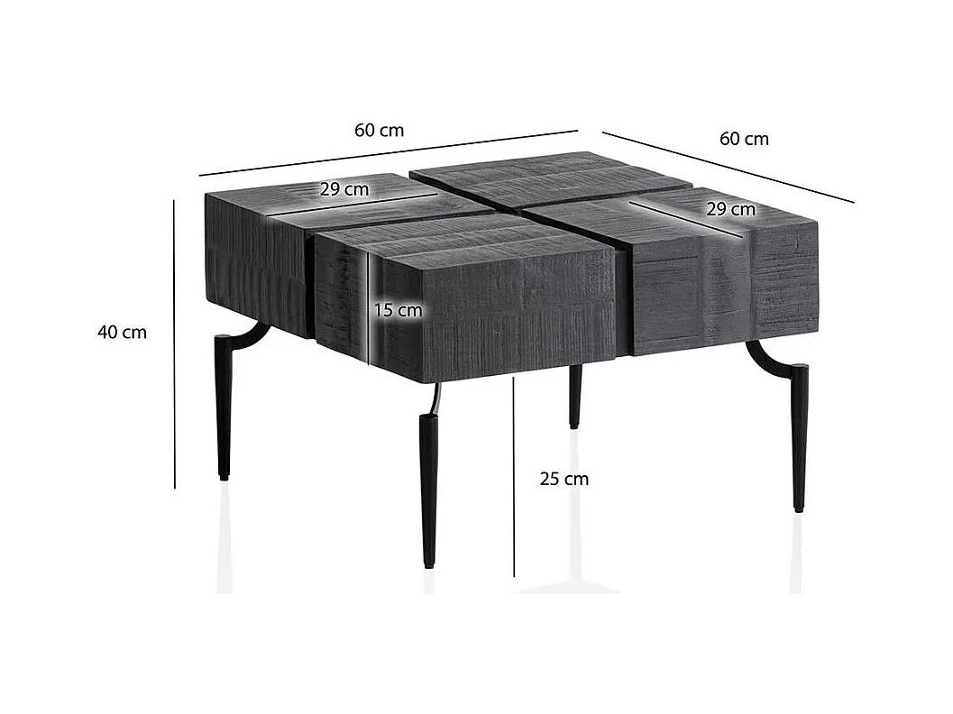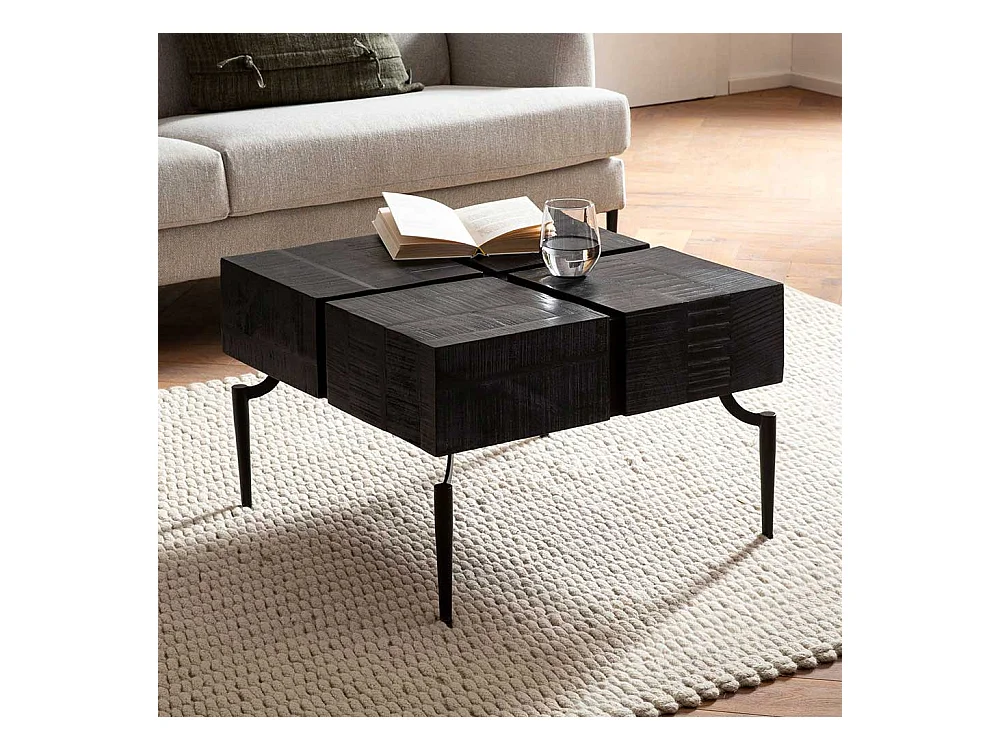 Couchtisch Sofatisch in Schwarz aus Massivholz und Metall