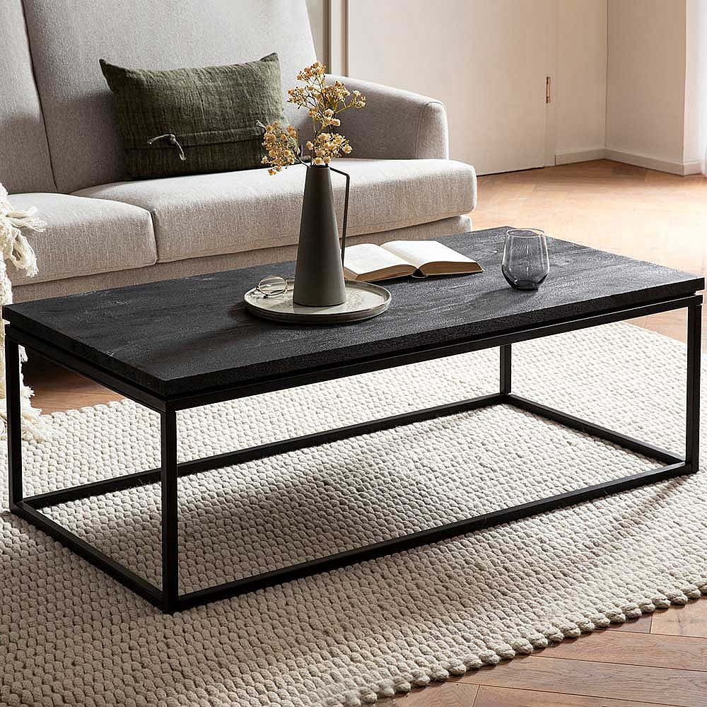Couchtisch Sofatisch in Schwarz aus Metall und Holz
