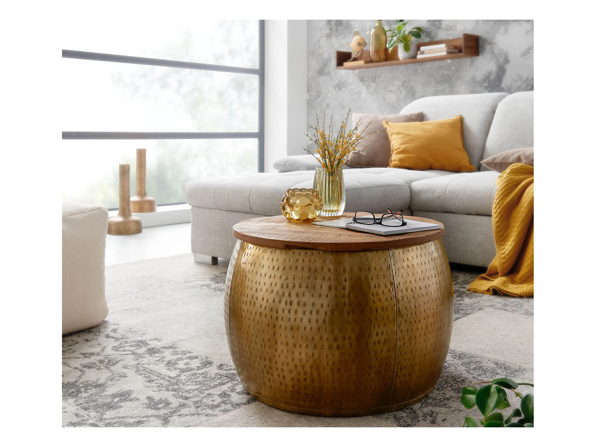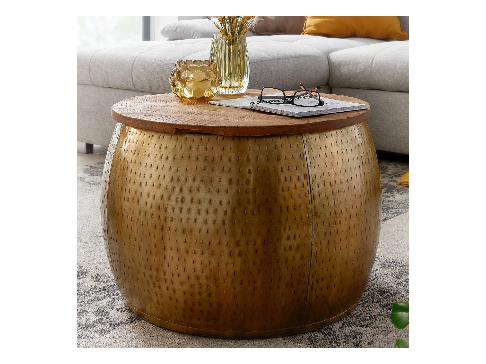 Couchtisch Sofatisch Rund Metall Ø 60 cm Tisch Stauraum Wohnzimmertisch