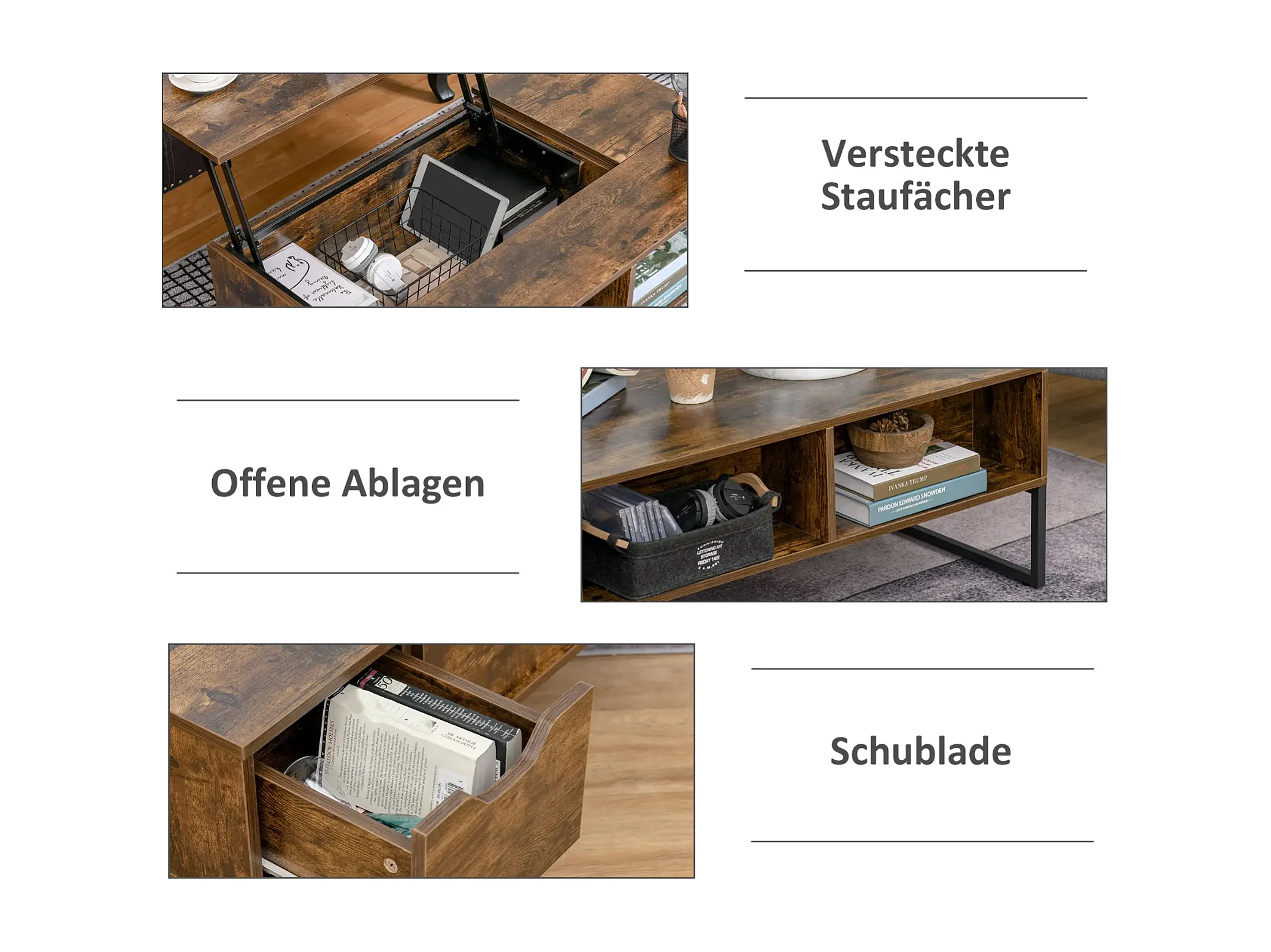 Couchtisch,Sofatisch Wohnzimmertisch Kaffeetisch mit Höhenverstellbarer 100 x 60 x 44 cm
