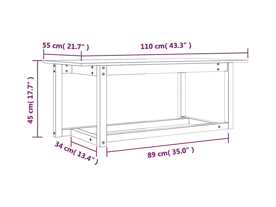 Couchtisch Weiß 110x55x45 cm Massivholz Kiefer
