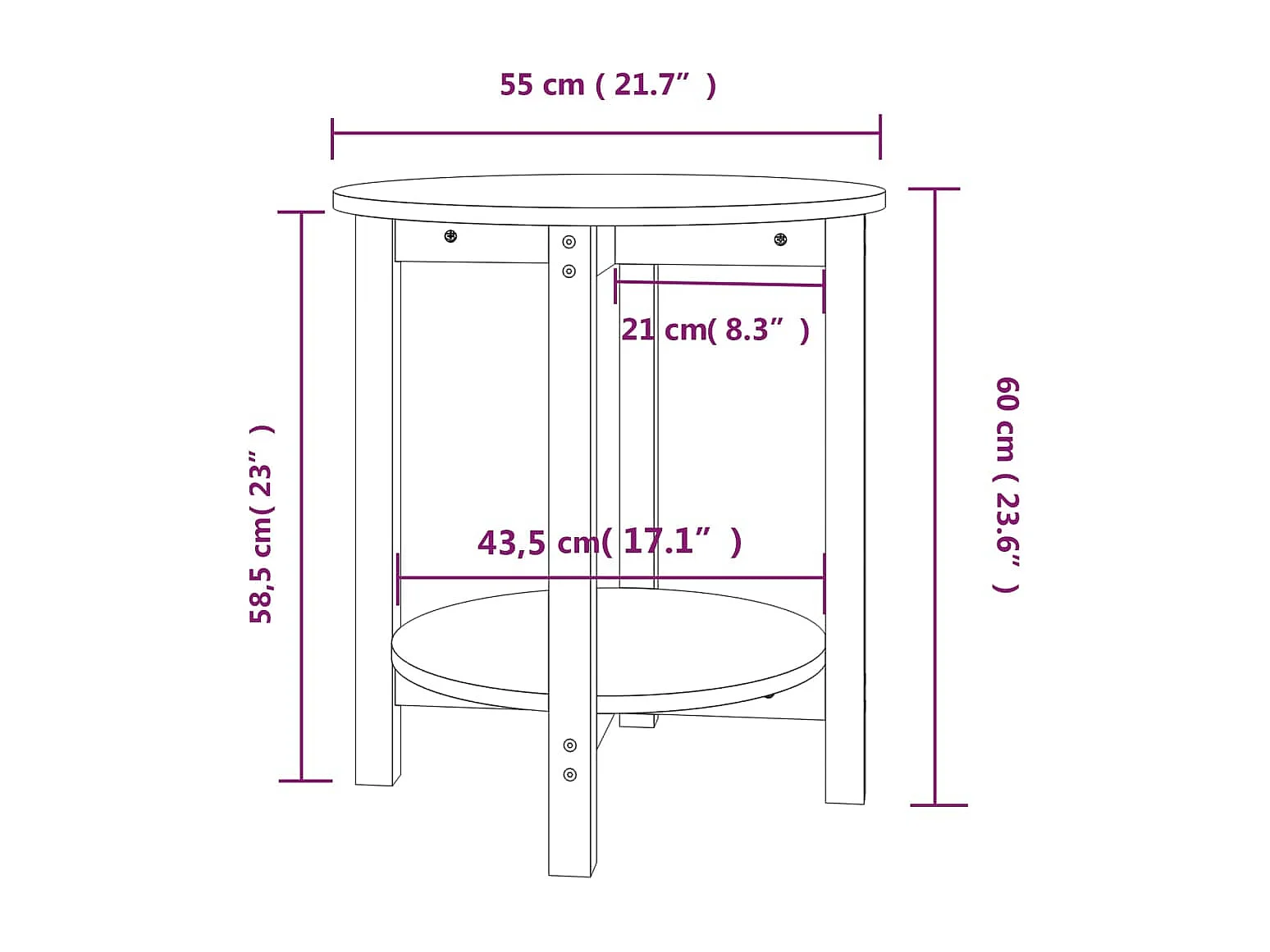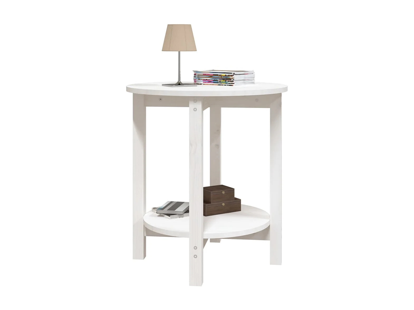 Couchtisch Weiß Ø 55x60 cm Massivholz Kiefer