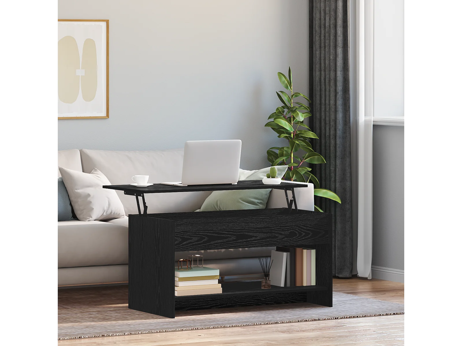 Couchtisch-Wohnzimmertisch-Beistelltische Schwarz Eichen-Optik 80x50,5x41,5 cm SHL24301