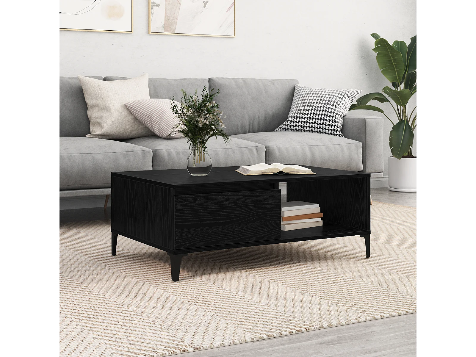 Couchtisch-Wohnzimmertisch-Beistelltische Schwarz Eichen-Optik 90x60x35 cm Holzwerkstoff SHL44491