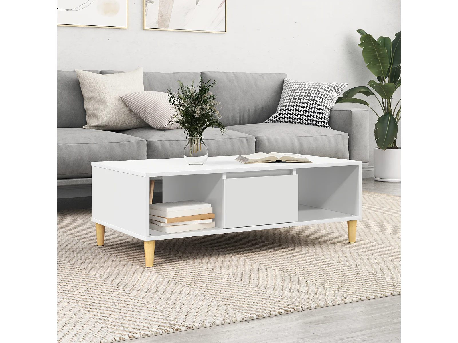 Couchtisch-Wohnzimmertisch-Beistelltische Weiß 102x55x35 cm SHL45812