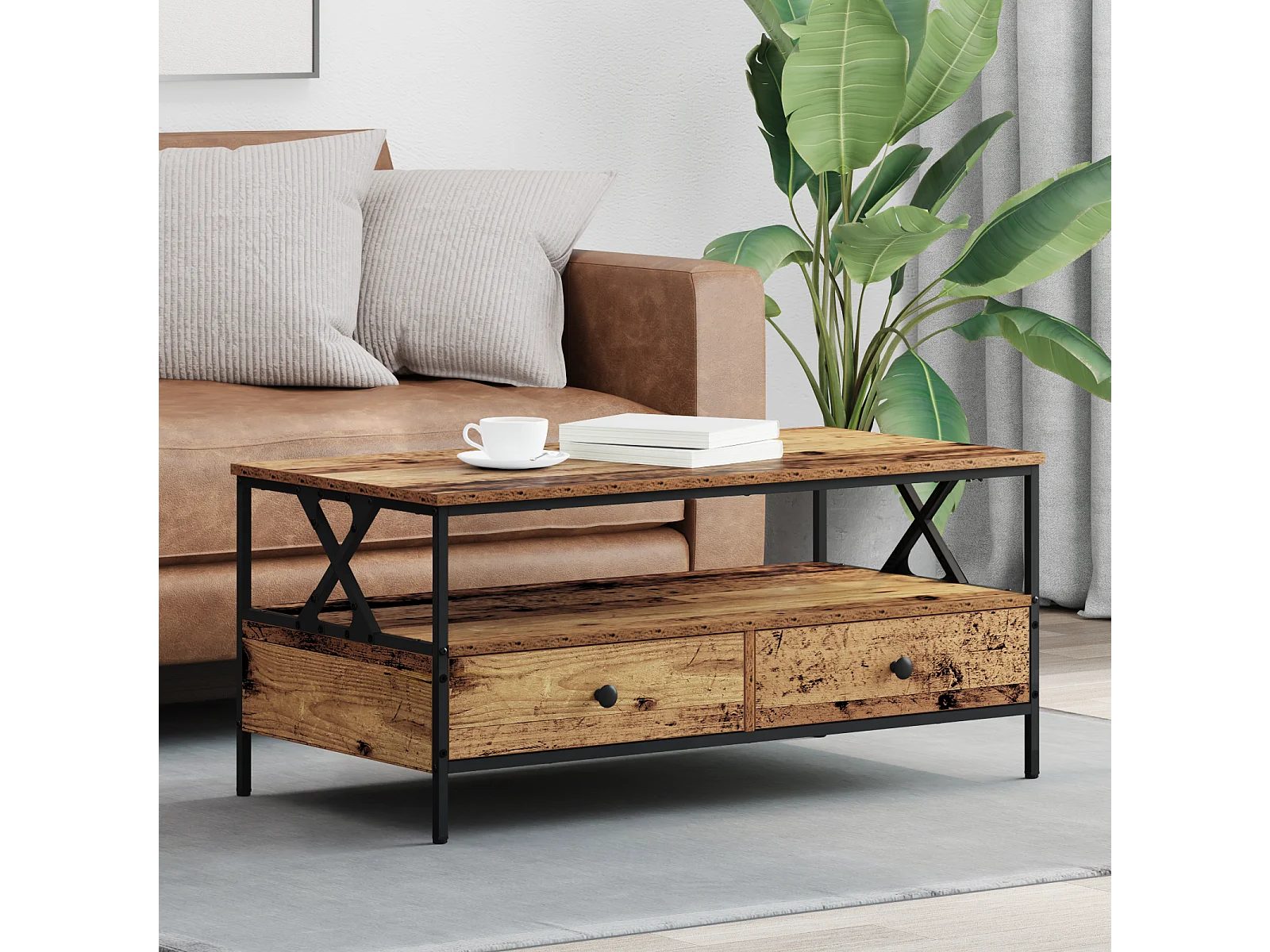 Couchtisch-Wohnzimmertisch-Beistelltische with Drawer Altholz 100x51x45 cm Holzwerkstoff SHL34677