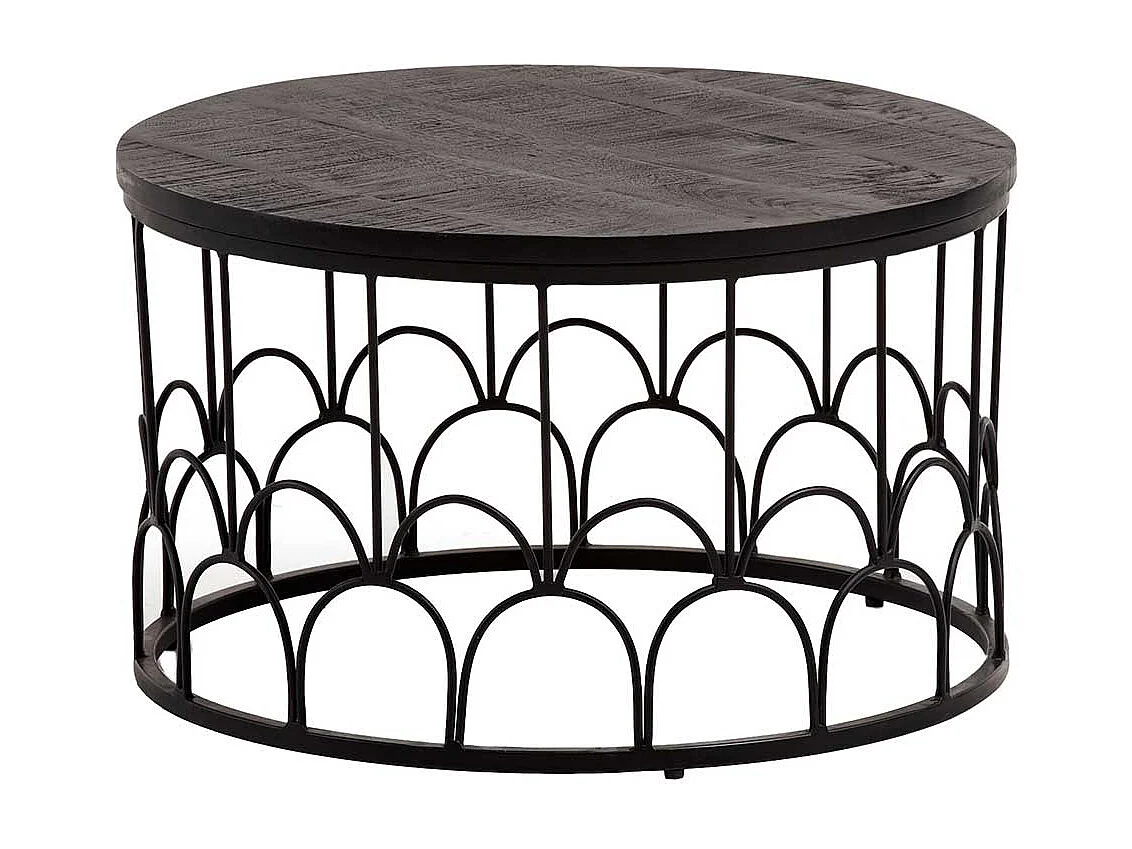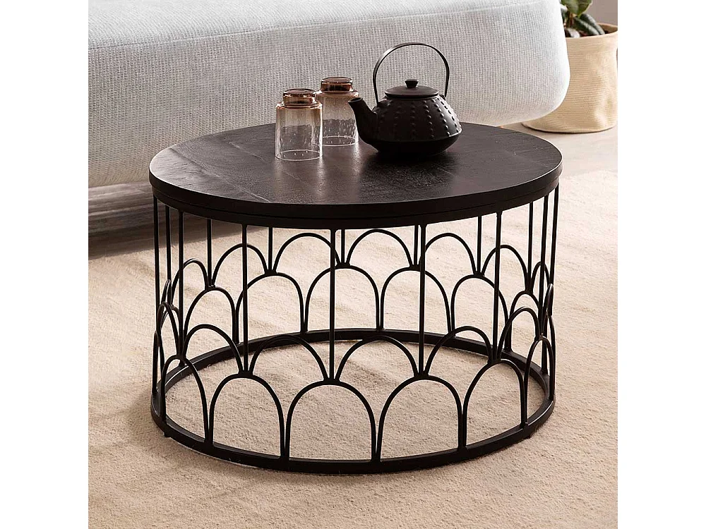 Couchtisch Wohnzimmertisch in Schwarz mit Ringgestell