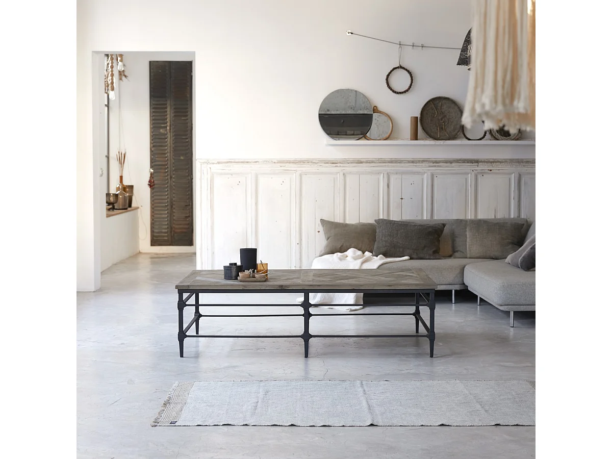 Couchtisch Wohnzimmertisch Materialmix Ulme Metall Industriedesign neu Tikamoon
