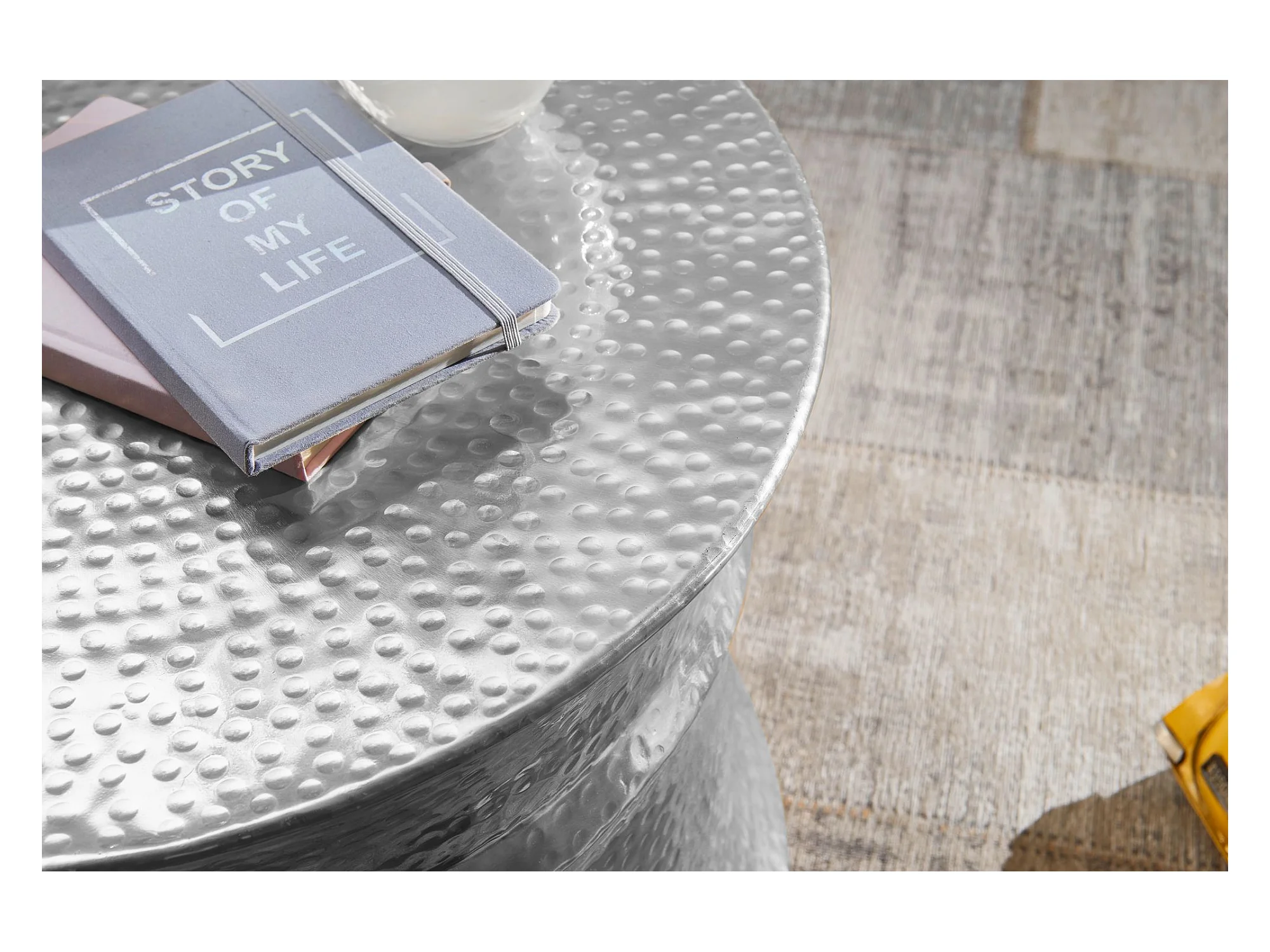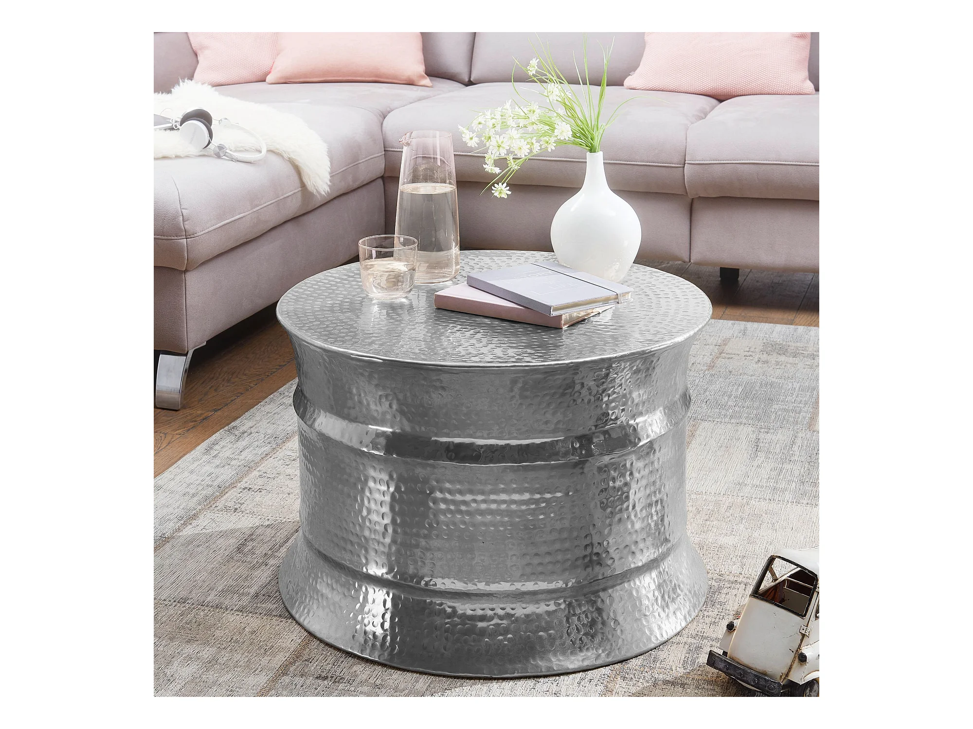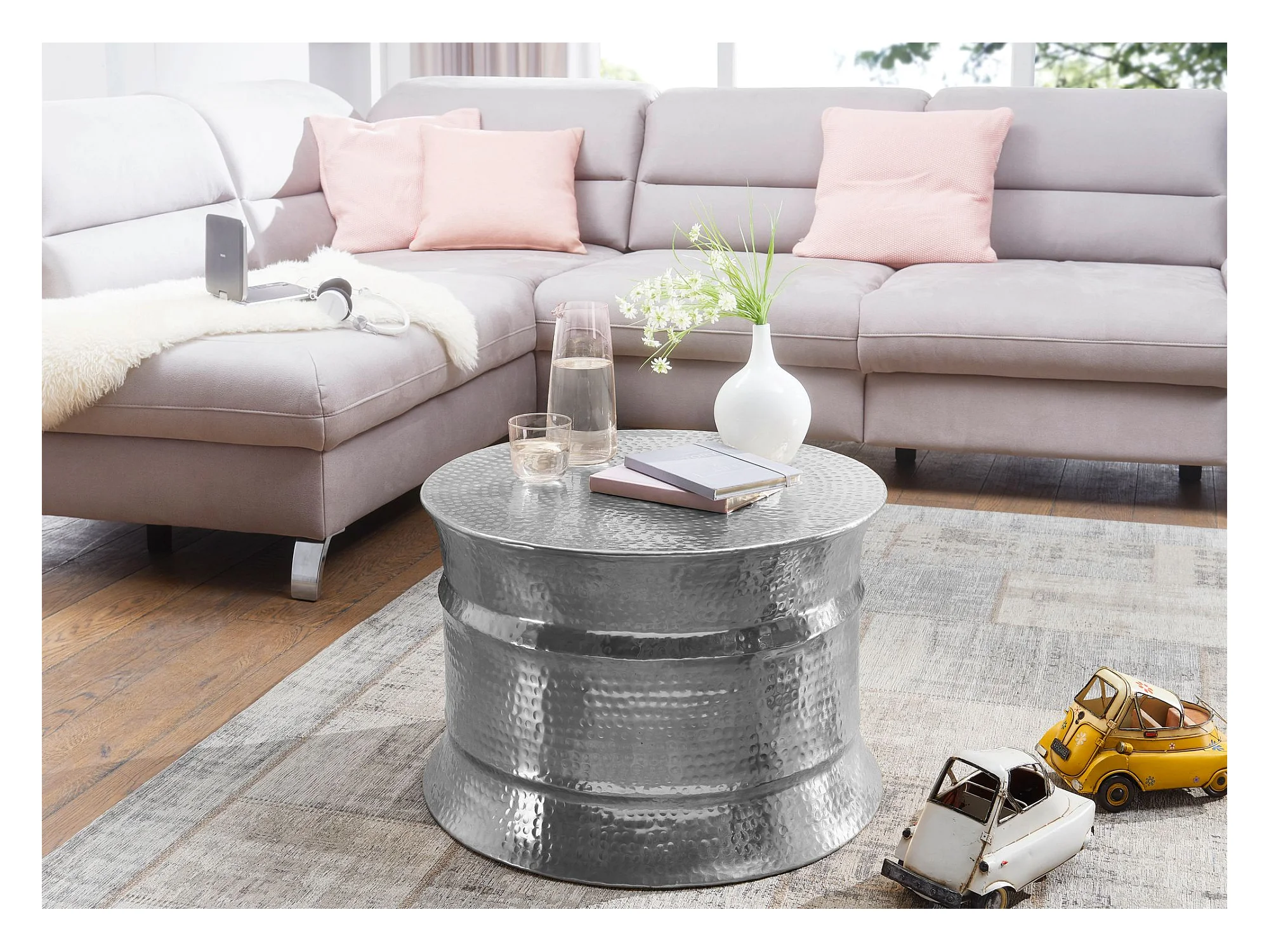 Couchtisch Wohnzimmertisch Sofatisch rund Hammerschlag Metall Alu Modern