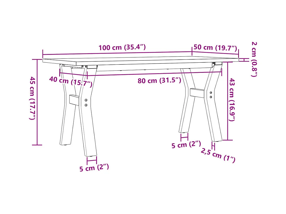 Couchtisch Y-Gestell 100x50x45 cm Massivholz Kiefer & Stahl
