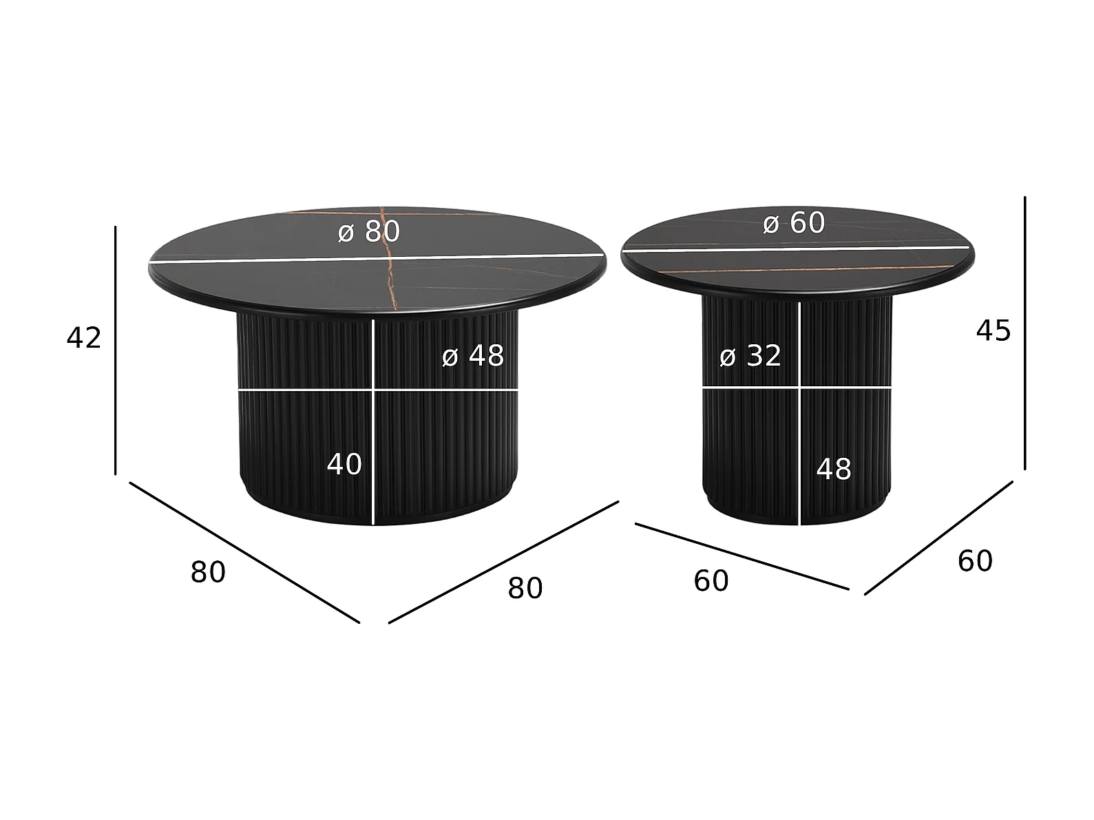 Couchtische 2er Set rund Easy - Marmor-Optik & MDF - Schwarz