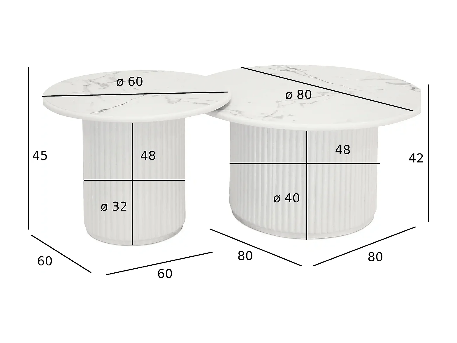 Couchtische 2er Set rund Easy - Marmor-Optik & MDF - Weiß