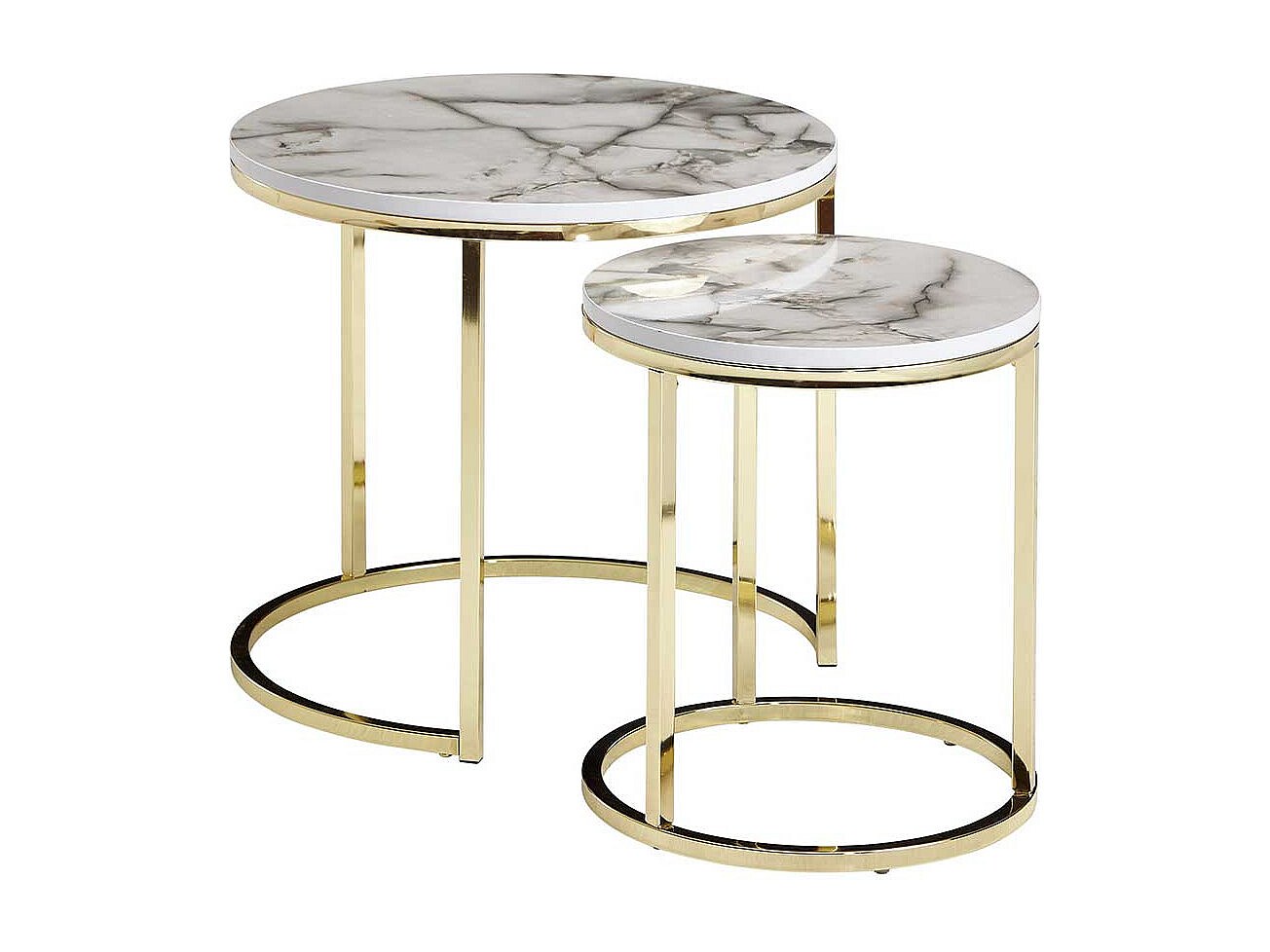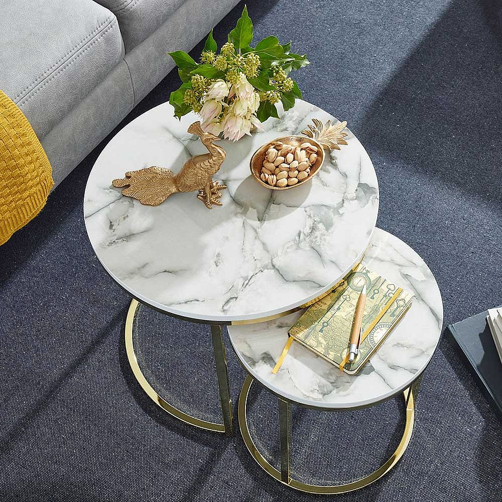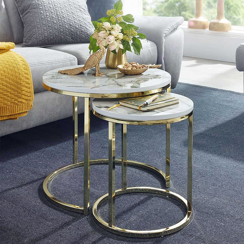 Couchtische Marmor Optik mit Ringgestell Goldfarben (zweiteilig)