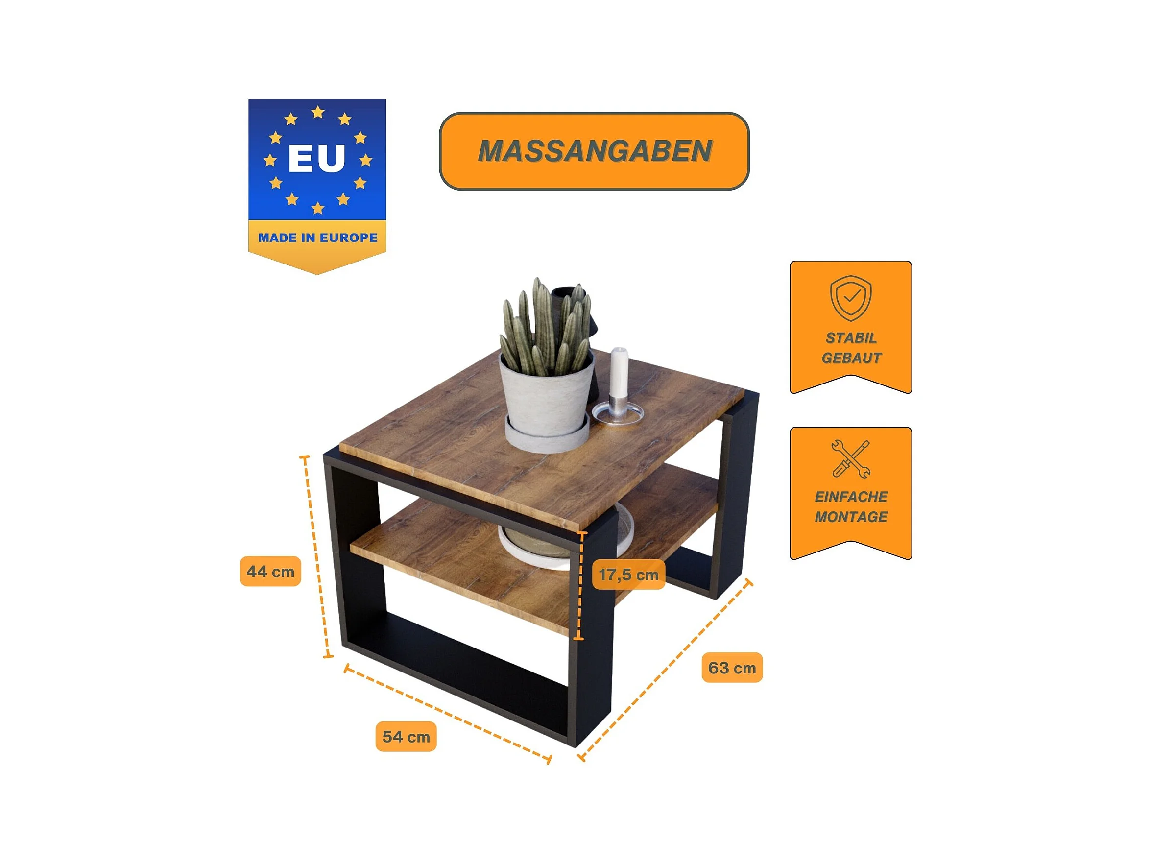 CraftPAK moderner & stabiler Couchtisch für Wohnzimmer aus Holzwerkstoff 44x54x63cm