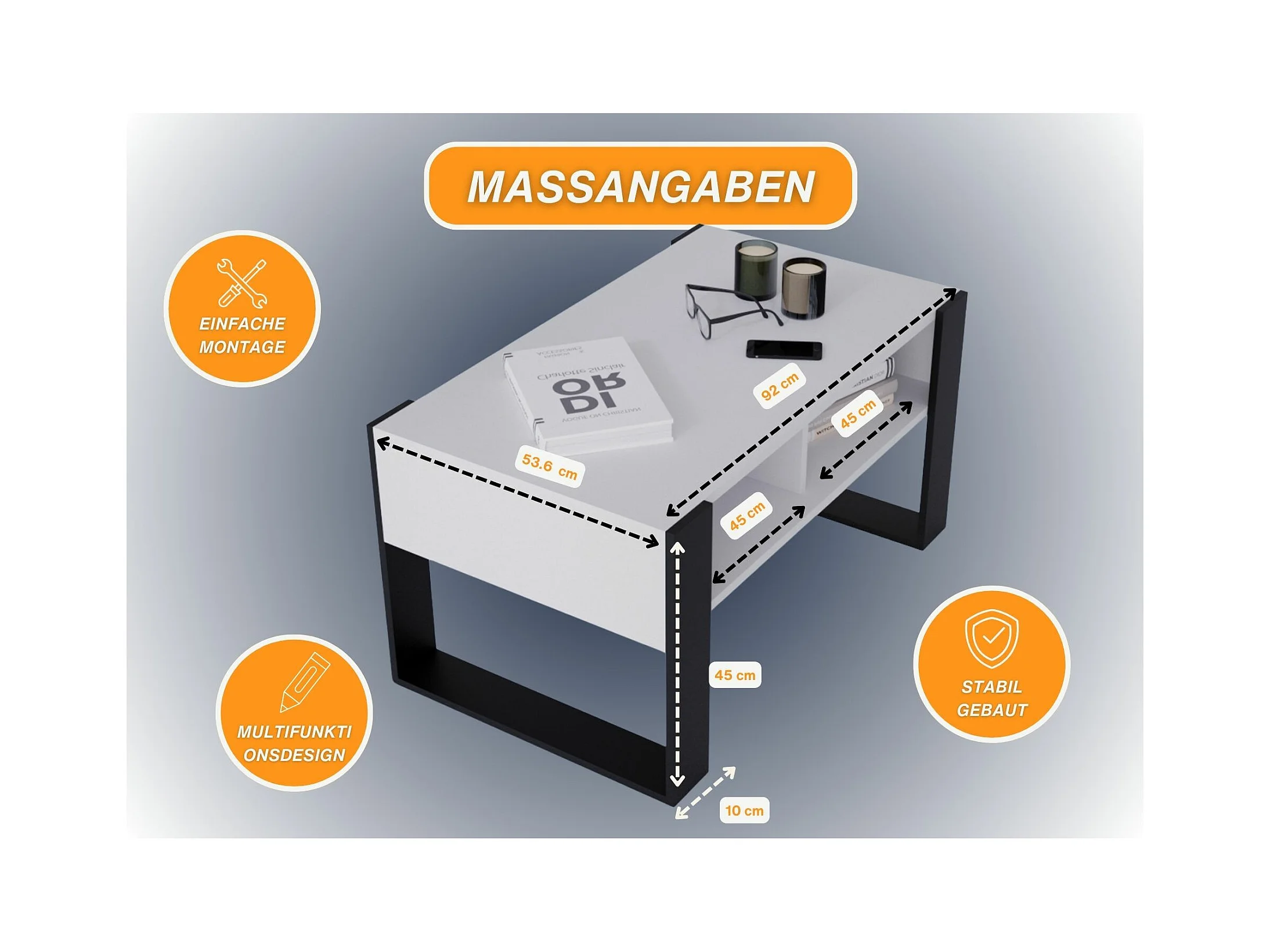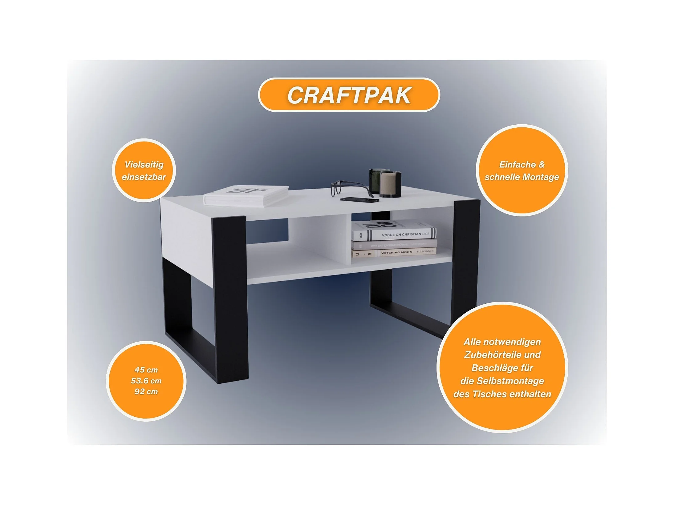 CraftPAK moderner & stabiler Couchtisch für Wohnzimmer aus Holzwerkstoff 45x53,6x92cm