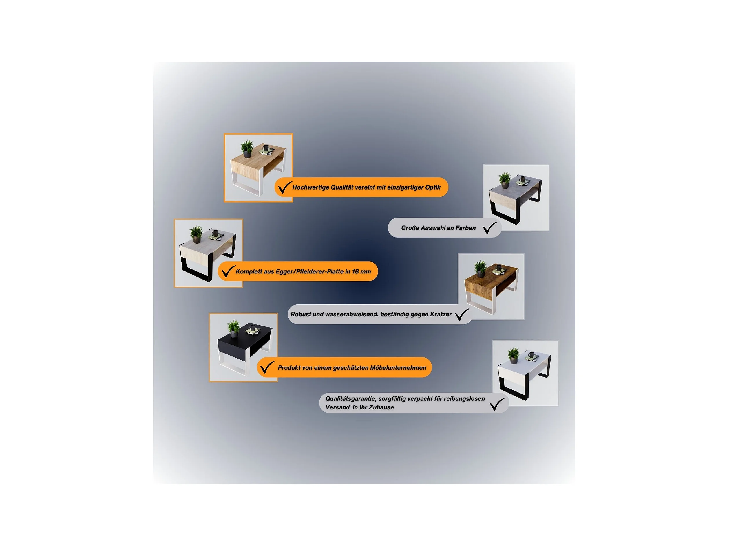 CraftPAK moderner & stabiler Couchtisch für Wohnzimmer aus Holzwerkstoff 45x53,6x92cm