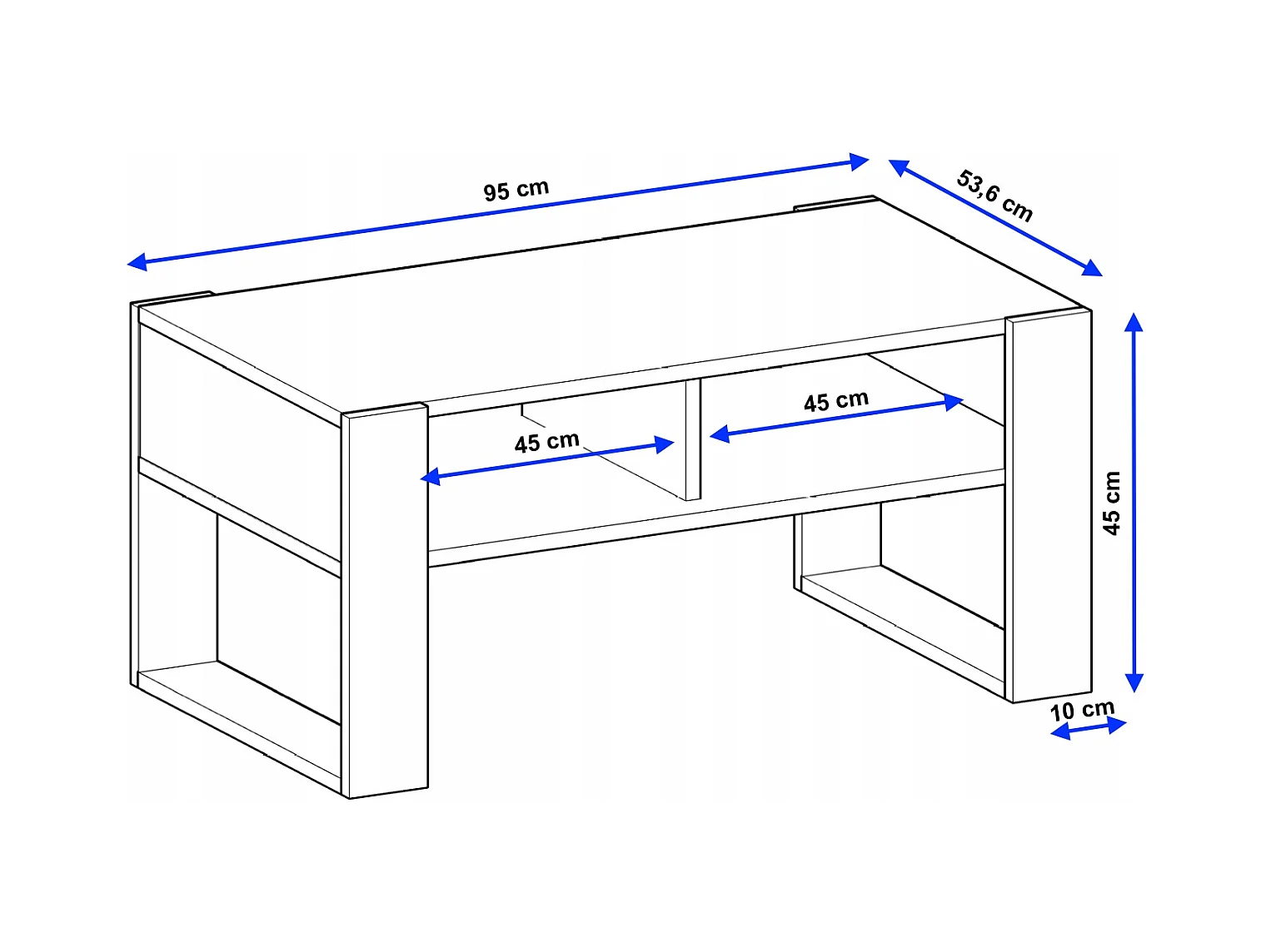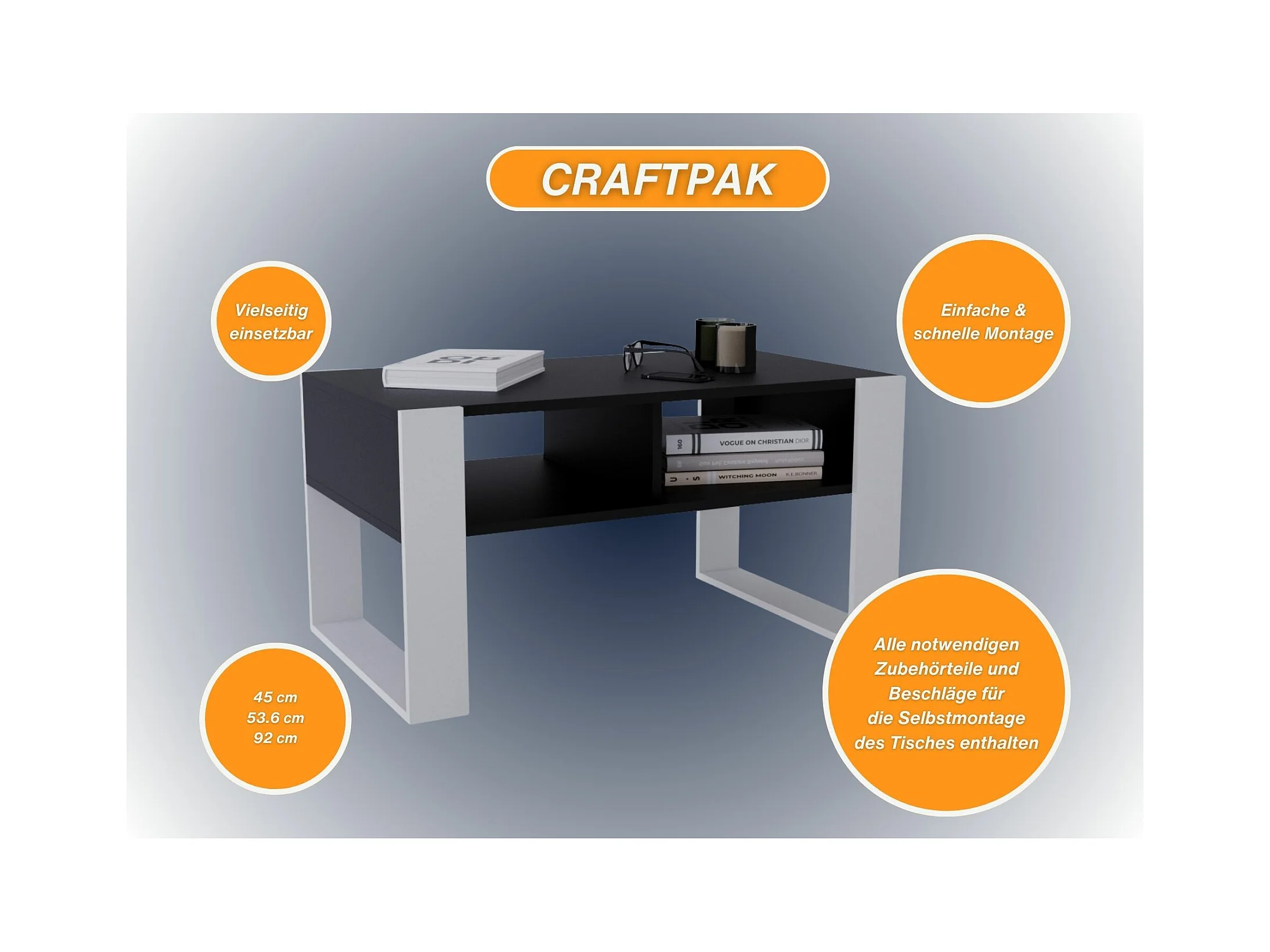 CraftPAK moderner & stabiler Couchtisch für Wohnzimmer aus Holzwerkstoff 45x53,6x92cm