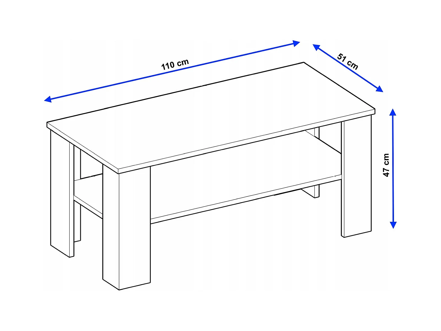 CraftPAK moderner & stabiler Couchtisch für Wohnzimmer aus Holzwerkstoff 47x51x110cm
