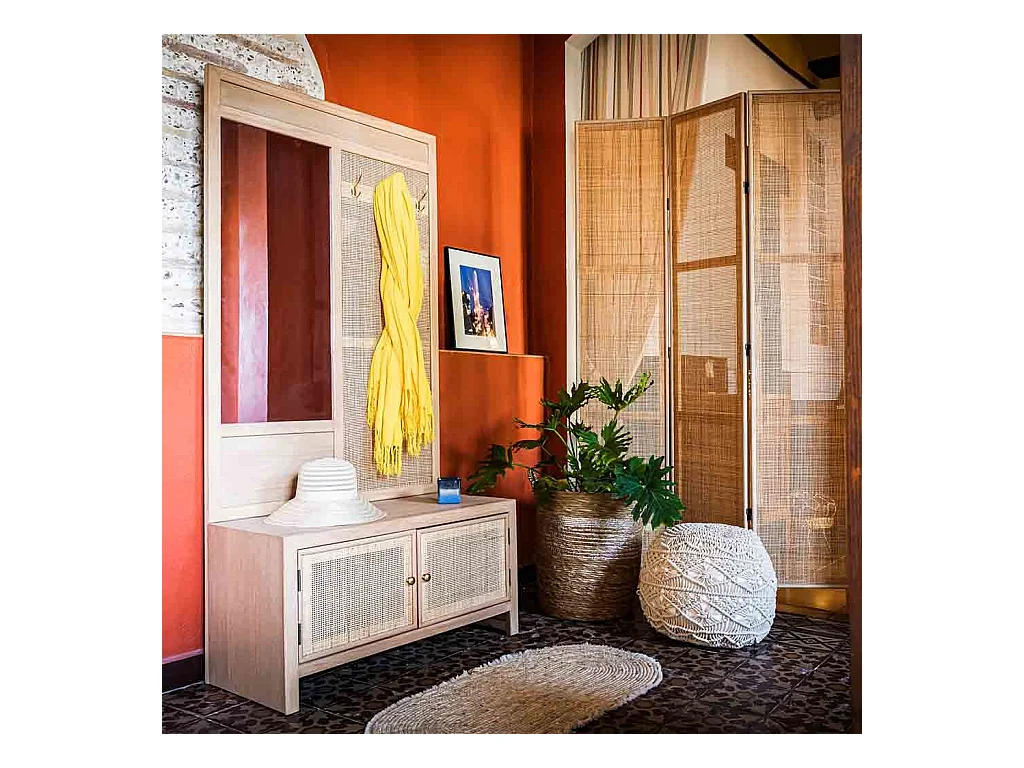 Cremefarbener geflochtener Baumwoll-Puff, 45 x 45 x 40 cm