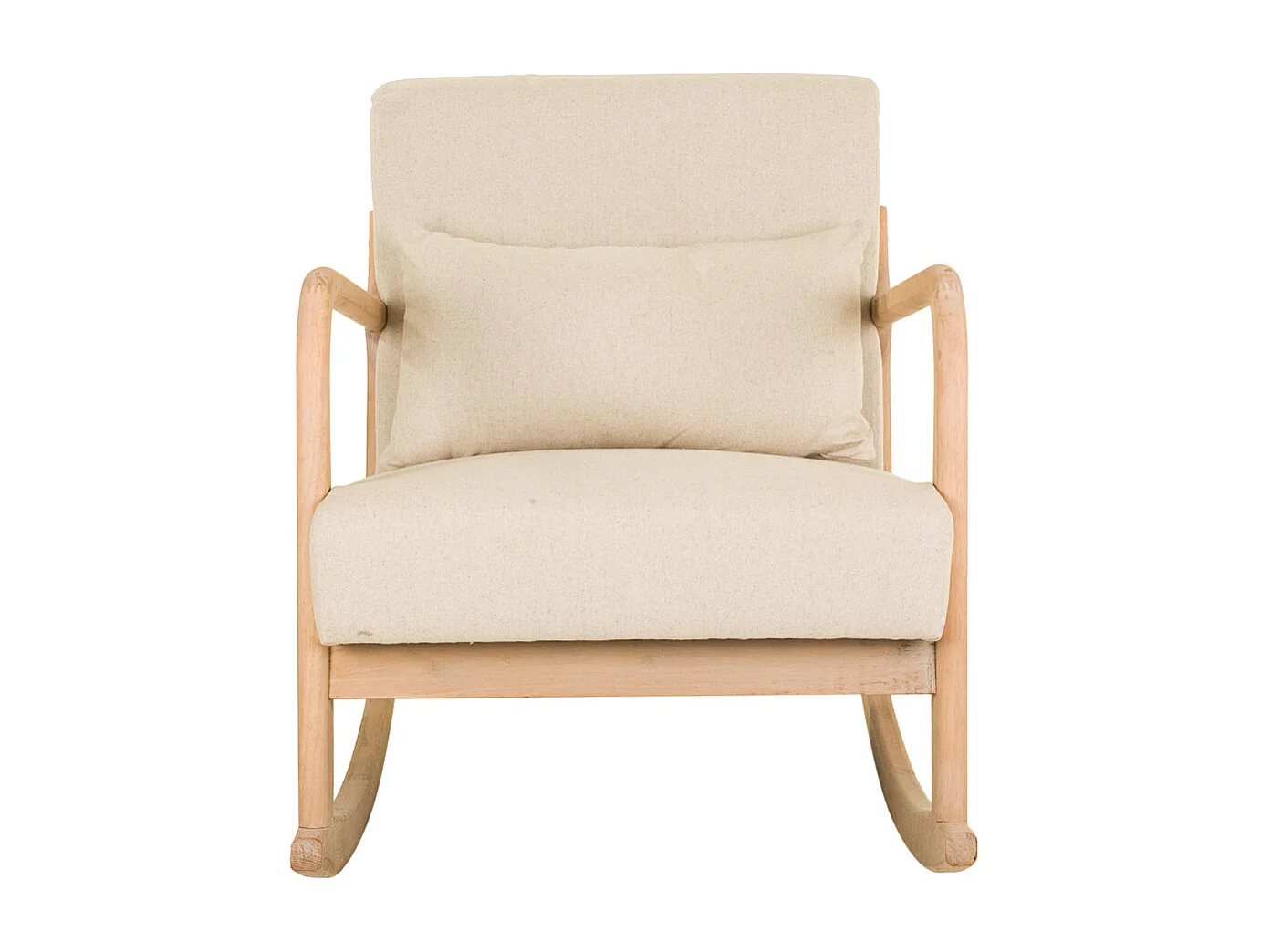 Cremefarbener, gepolsterter Schaukelsessel aus Holz, 66 x 88 x 47/78 h cm
