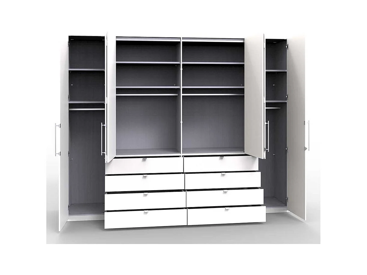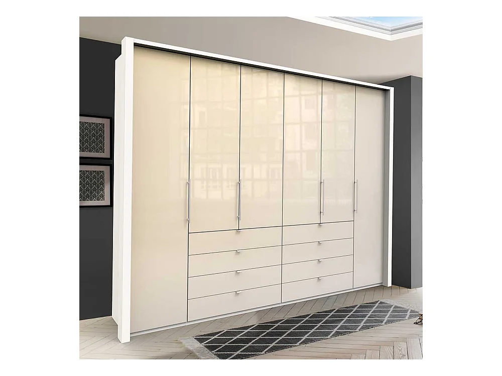 Cremefarbener Schlafzimmerschrank 4 türig 8 Schubladen