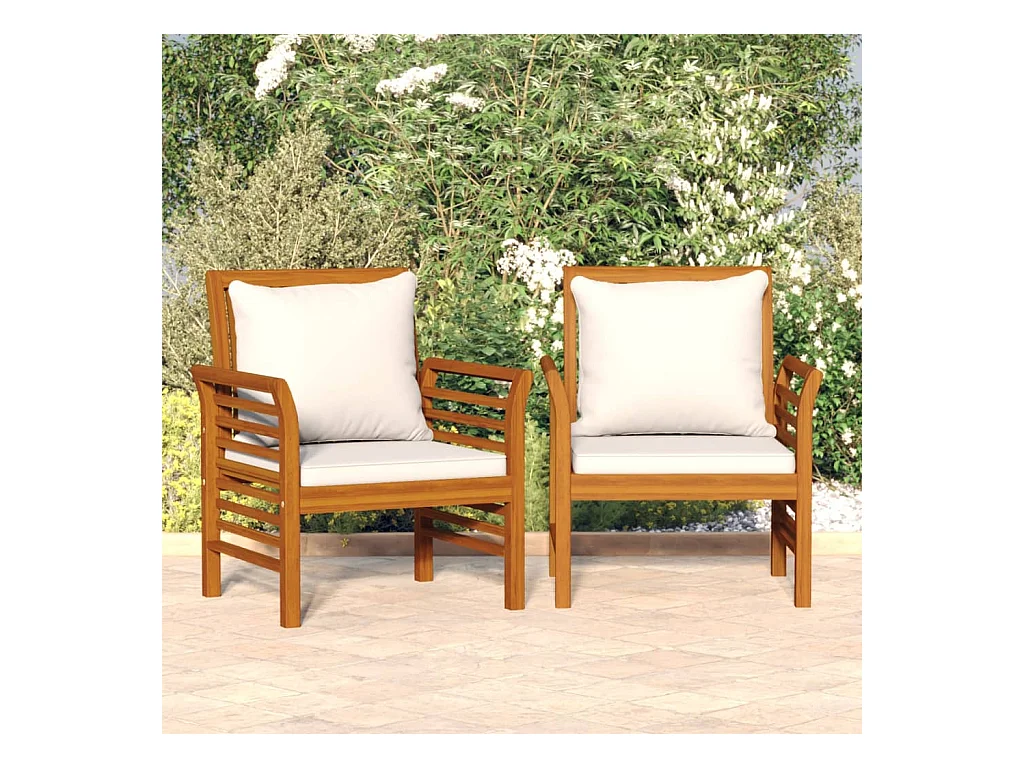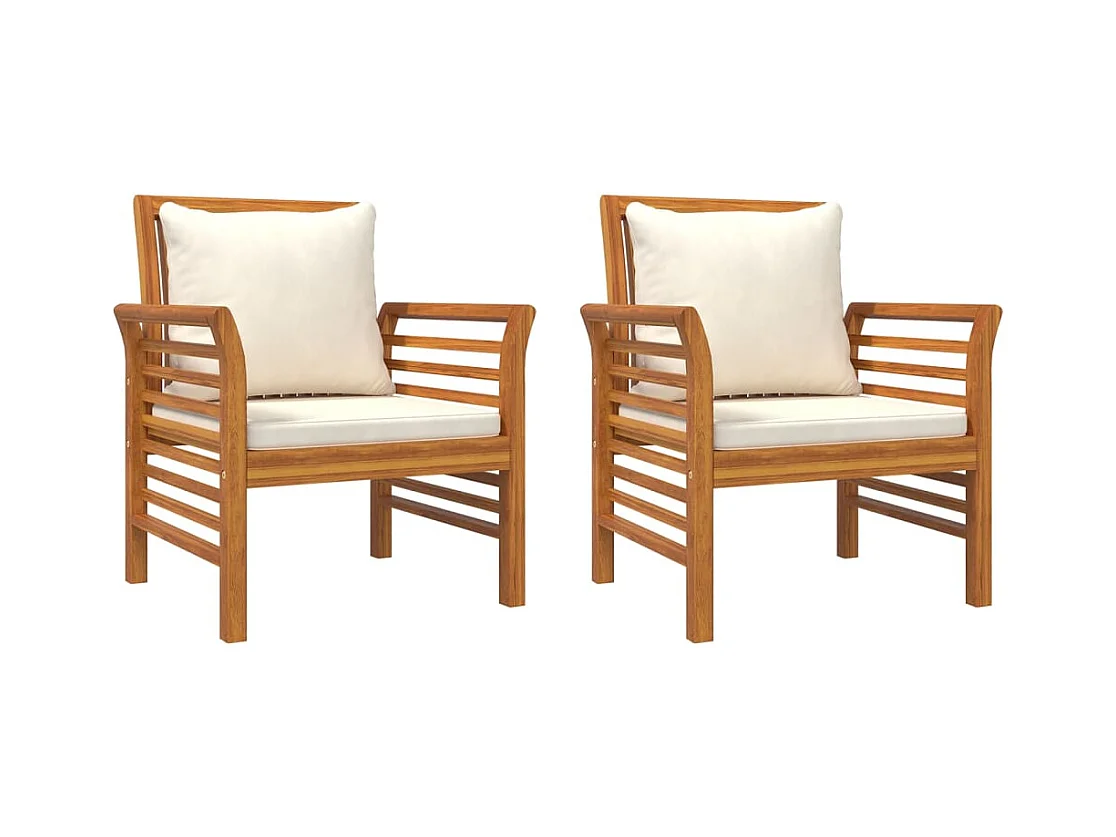 Cremeweiße Sofasessel und Kissen im 2er-Set aus Akazienholz