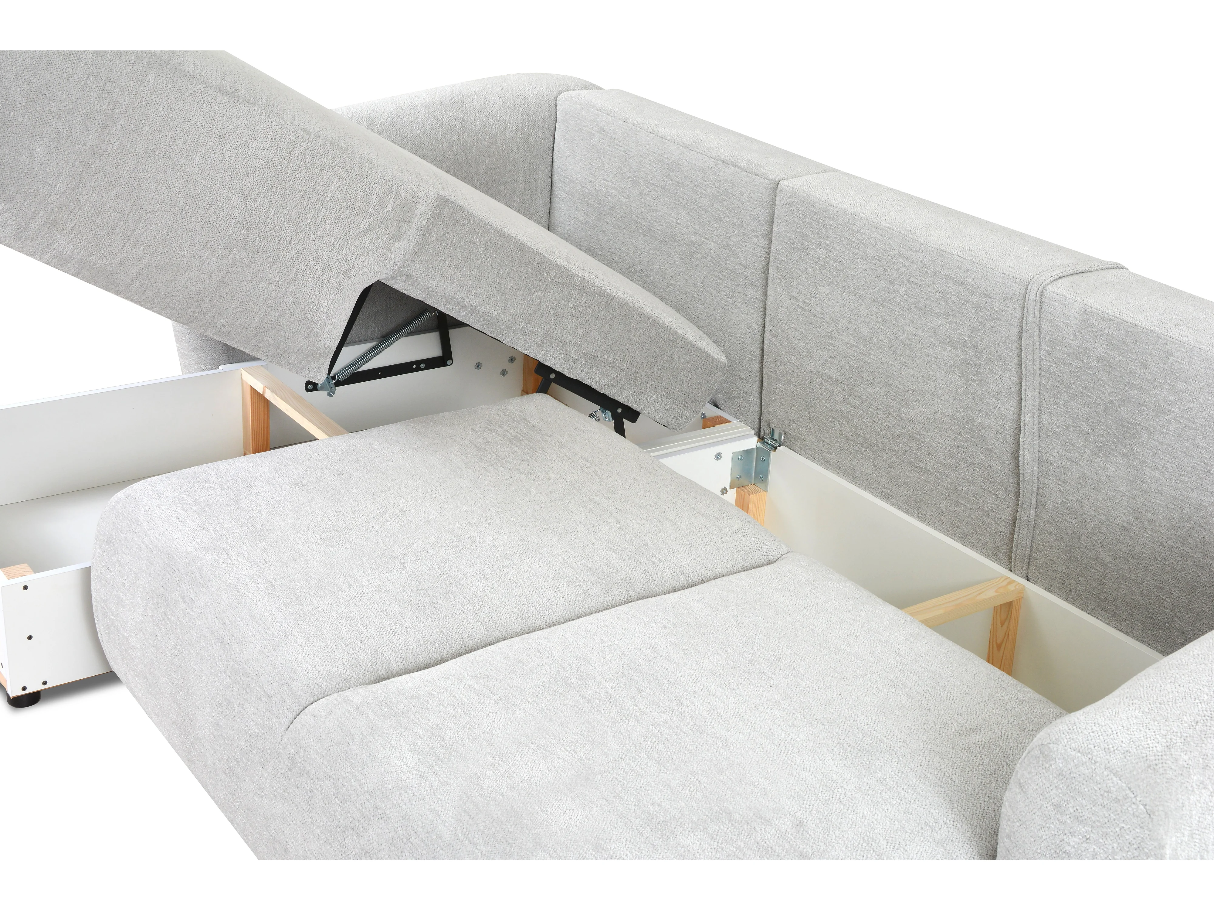DALLAS – Ecksofa mit Schlaffunktion links 255x165 cm, Stoff Raven 06 hellgrau