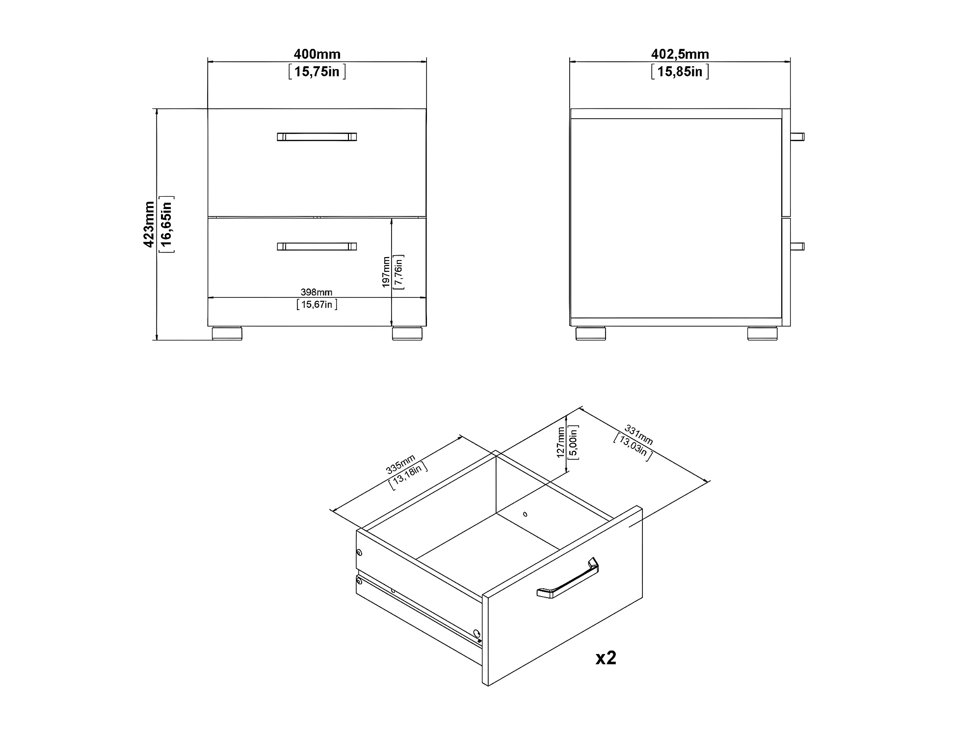 Dallas Nachttisch 2 Schubladen dunkel gebeiztes Eichendekor.