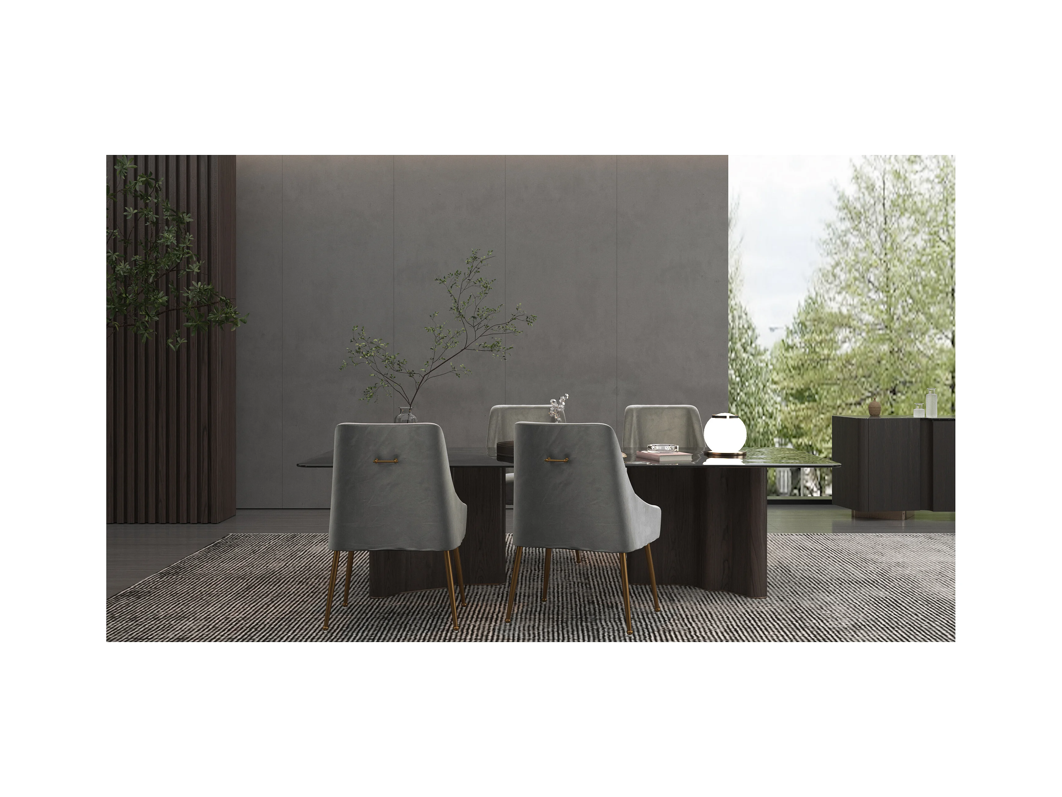 Daphne | Stuhl mit Armlehnen 2er Set aus Samt & Metall Grau