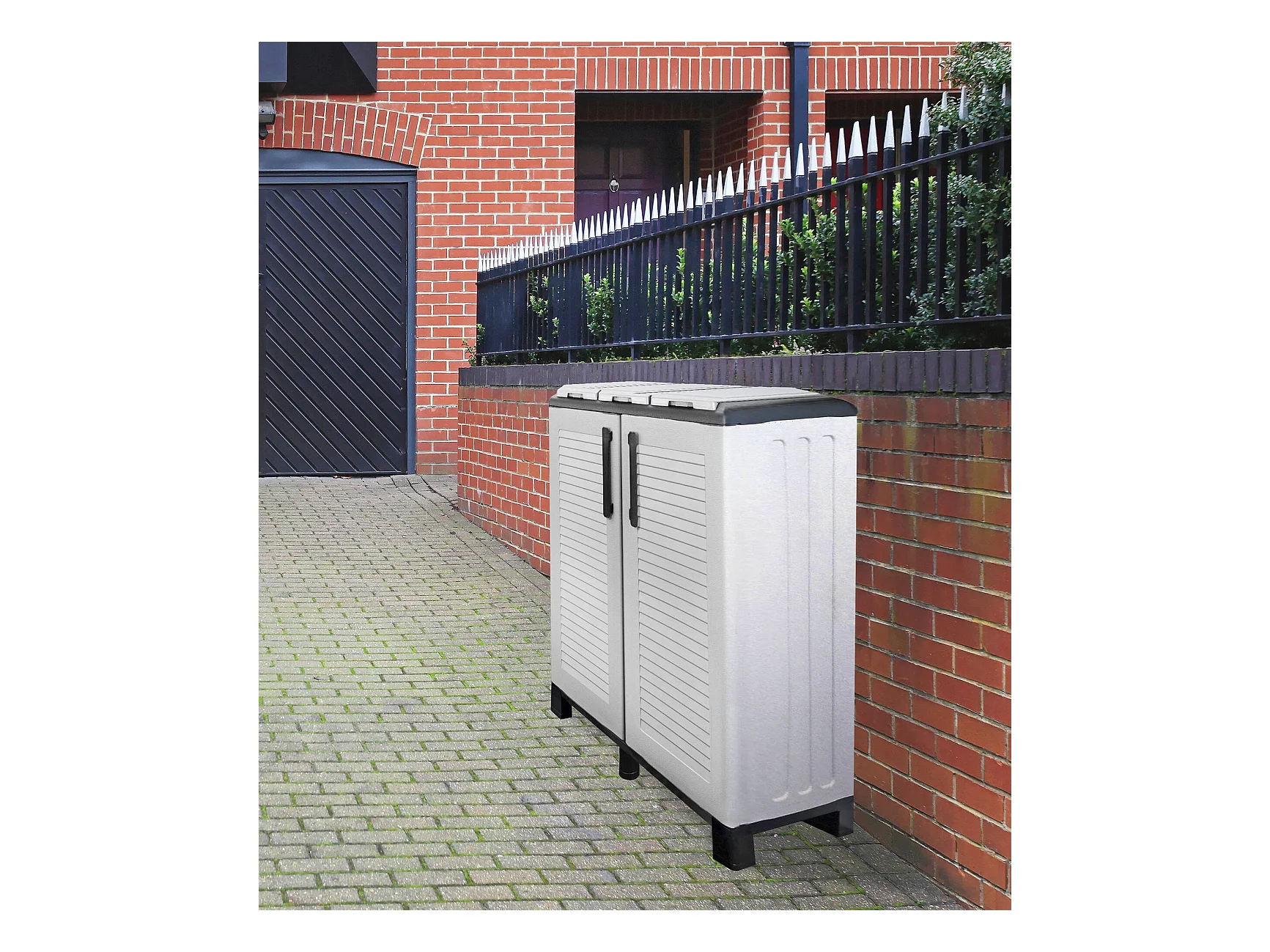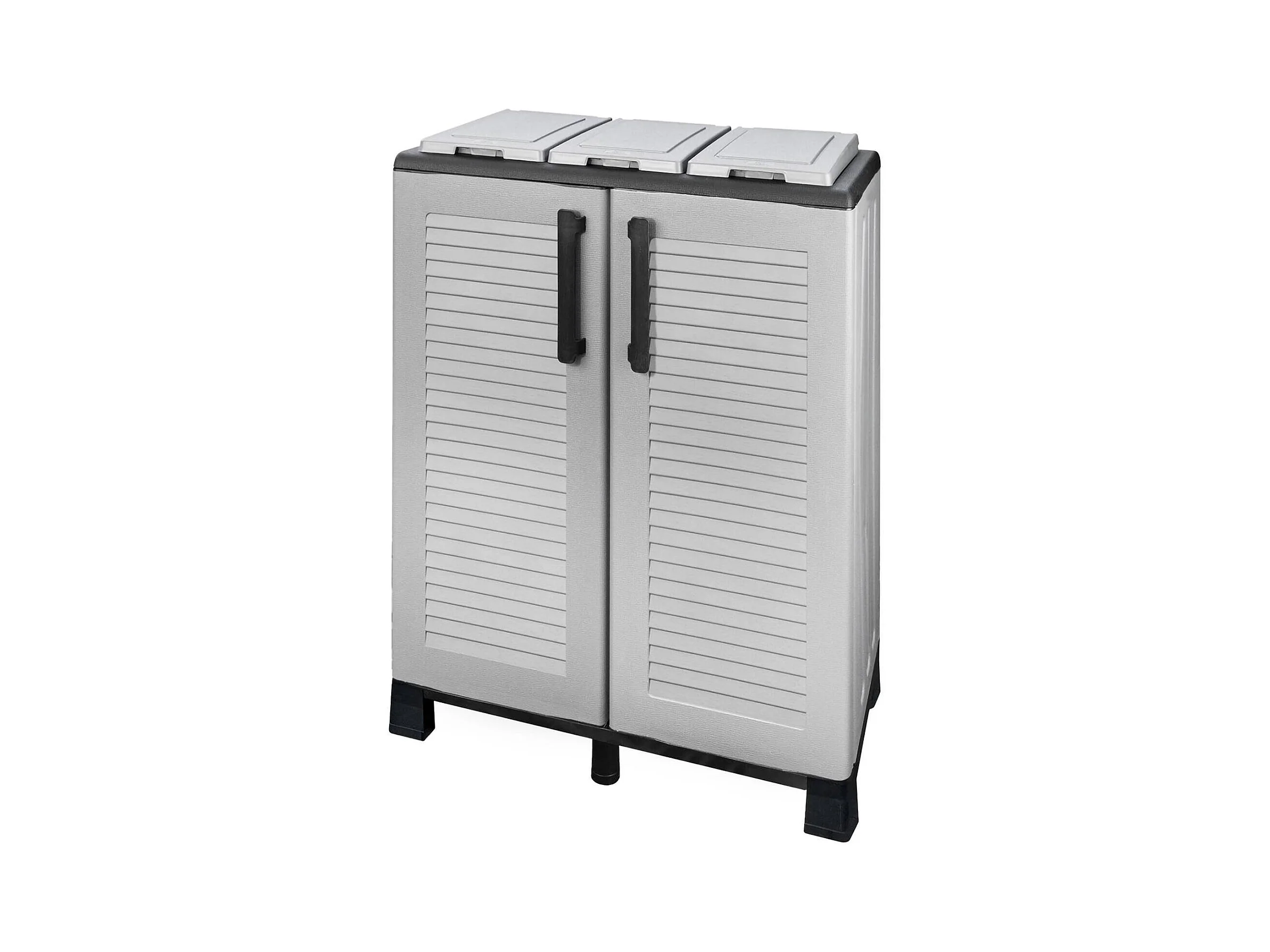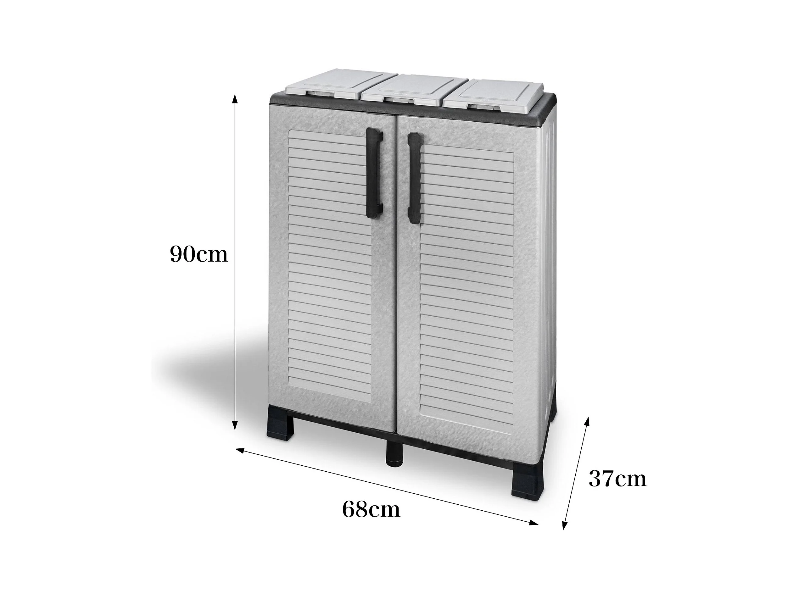 Dassennat Abfallbehälter, Abfallbehälter, 2-türiger Recyclingbehälter, 100 % Made in Italy, 68 x 37 x 90 cm, Hellgrau und Schwarz