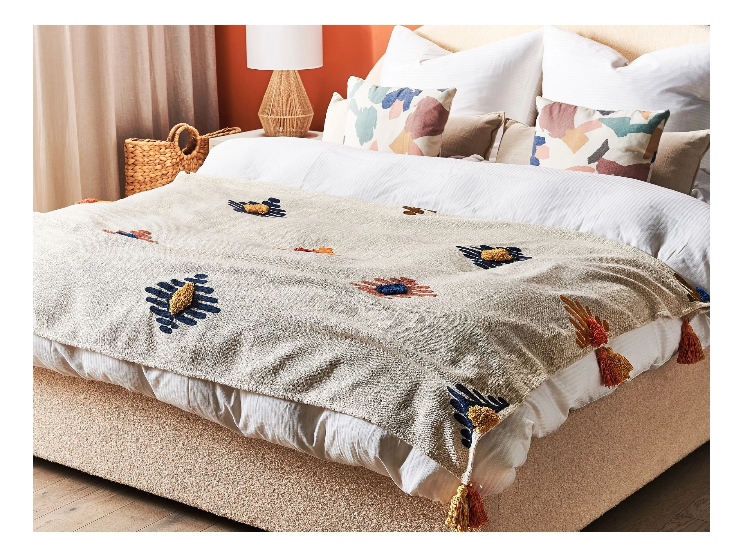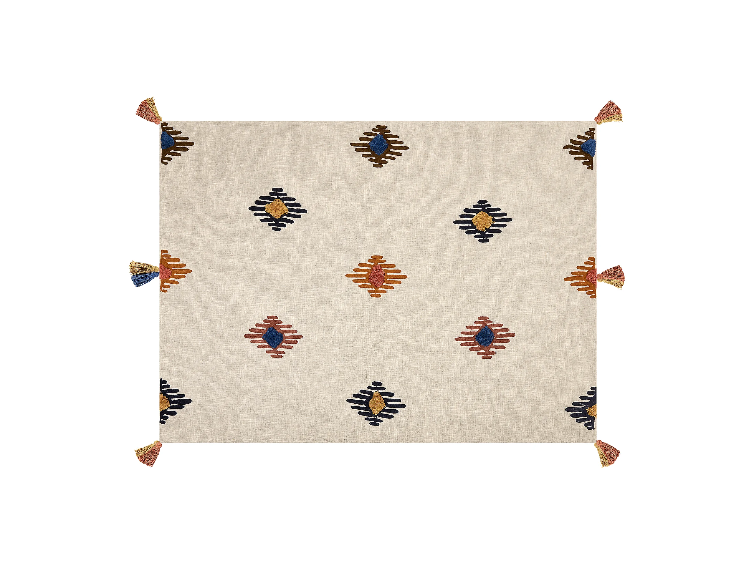 Kuscheldecke Baumwolle beige mit Muster bunt Quasten 130 x 180 cm Boho Munger