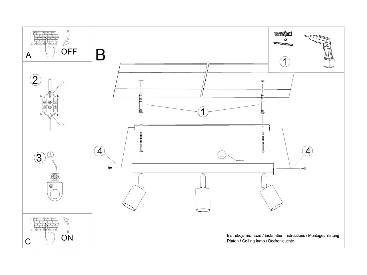 Deckenlampen Flare modern aus Stahl/Holz - 3 lichtquellen 3000K - L.61 x H. cm - schwarzes Holz
