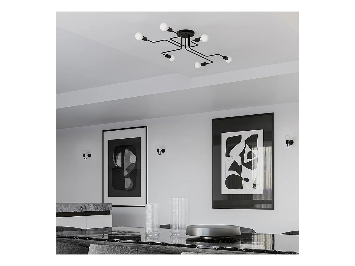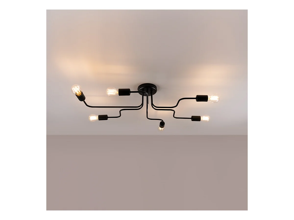 Deckenlampen Vector Industriell Aus Stahl - 6 Lichtquellen - L.80 X H. Cm - Schwarz